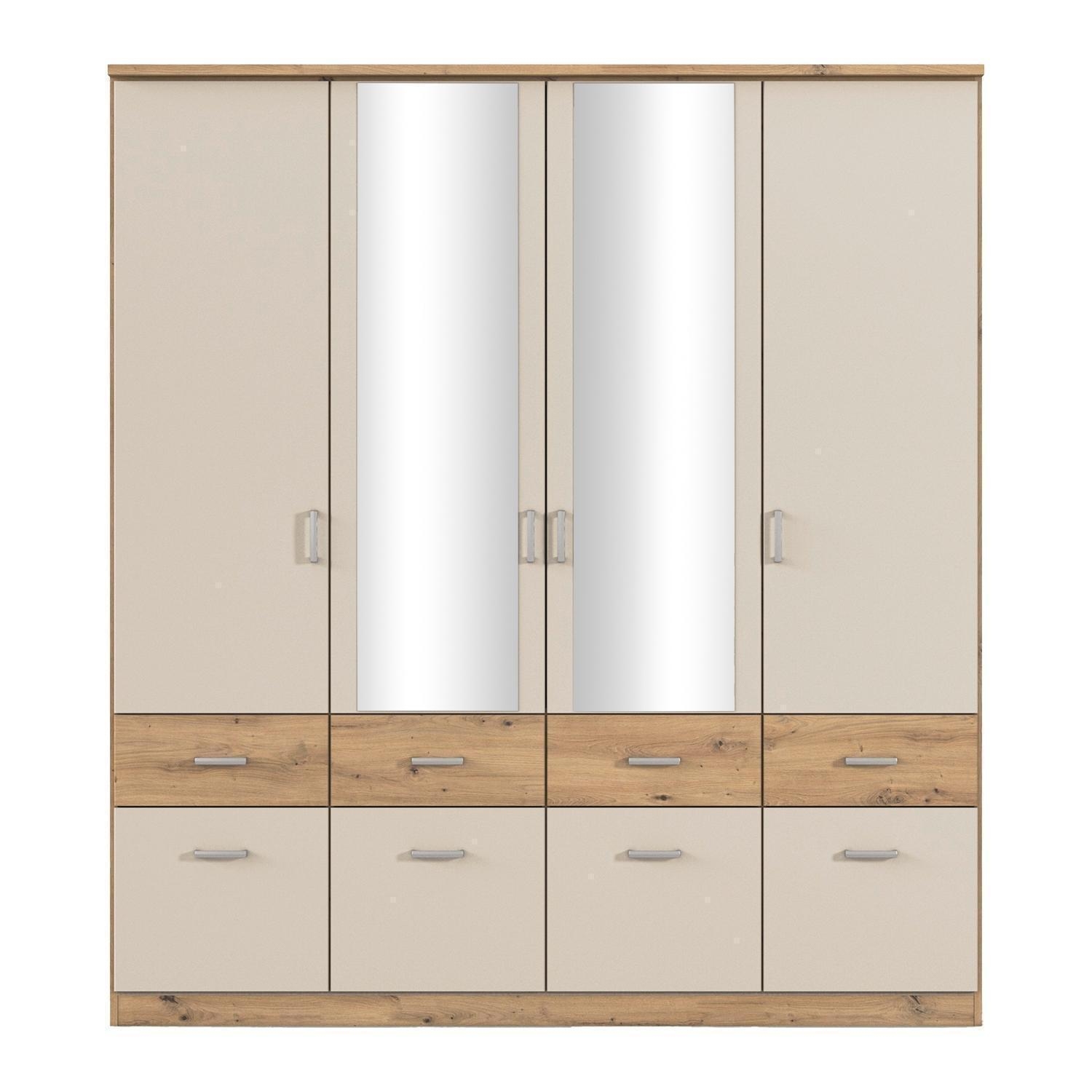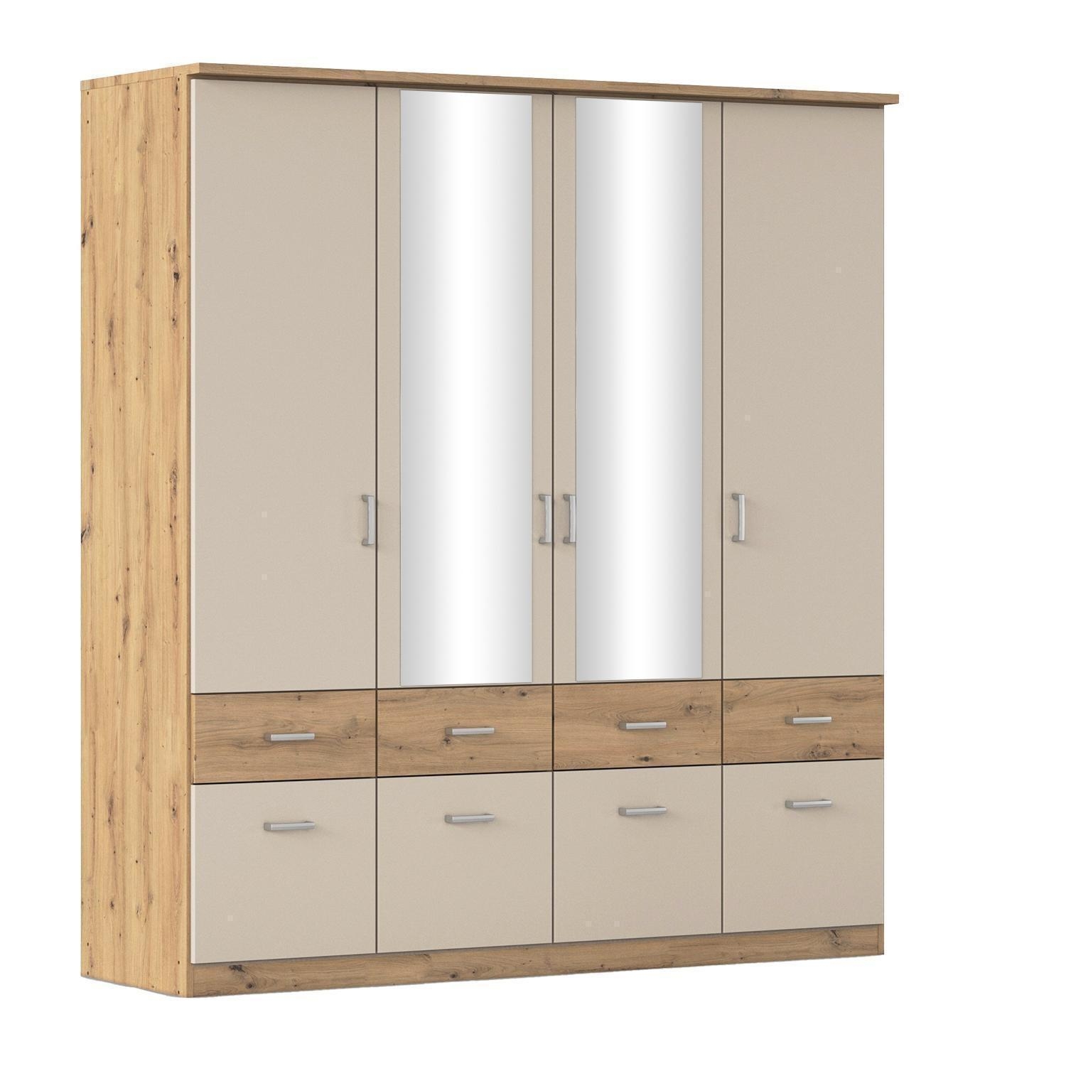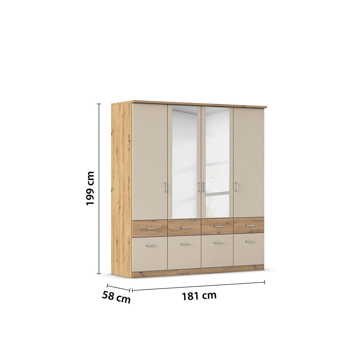 181 x 199 cm - 4 Türen - Artisan Eiche Dekor - Champagnerfarben - mit Spiegel