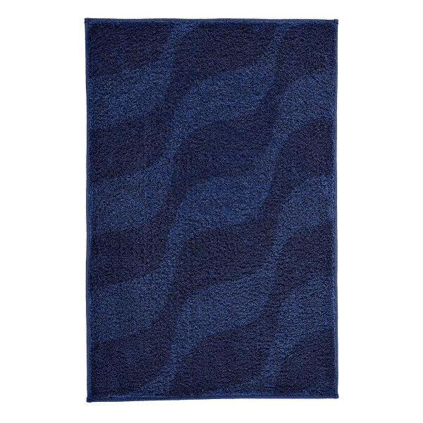 Die Badematte Kleine Wolke ONDA in Navyblau verbindet Komfort mit modernem Design. Mit einer Größe von 55 x 65 cm besteht sie aus Polyacryl und ist mit dezenten Wellenmotiven in Navyblau gestaltet. Eine rutschhemmende Beschichtung sorgt für sicheren Halt im Badezimmer. Die Florhöhe von 15 mm bietet ein angenehmes Gefühl unter den Füßen. Die Badematte ist bei 40 °C waschbar, trocknergeeignet und zudem für Fußbodenheizungen geeignet.