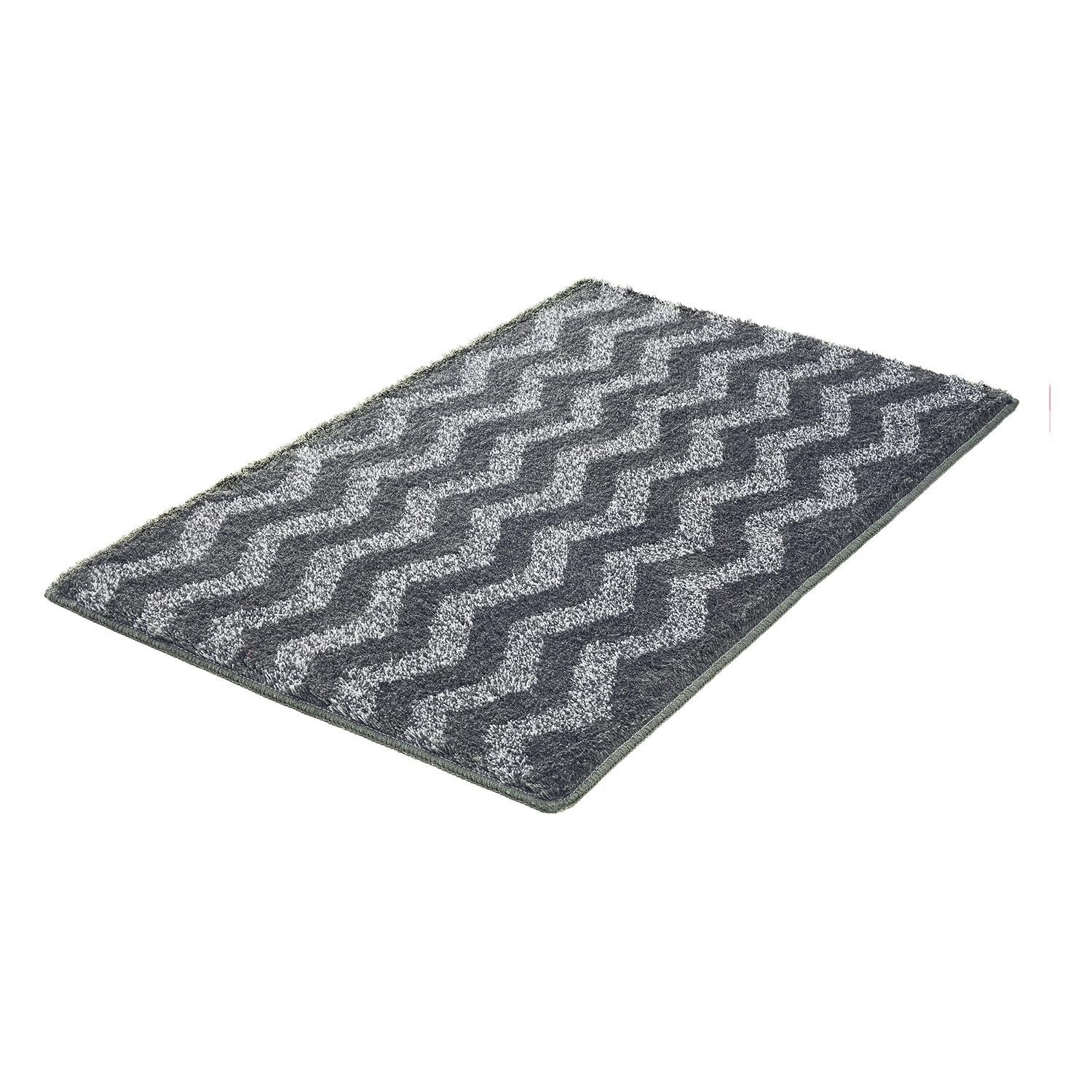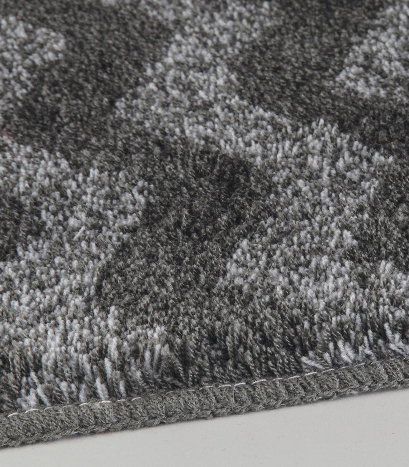 Die Badematte Kleine Wolke ZACK in Schiefergrau verbindet Komfort mit modernem Design. Mit einer Größe von 55 x 65 cm besteht sie aus Polyacryl und ist mit dezenten Zackenmotiven in Schiefergrau gestaltet. Eine rutschhemmende Beschichtung sorgt für sicheren Halt im Badezimmer. Die Florhöhe von 20 mm bietet ein angenehmes Gefühl unter den Füßen. Die Badematte ist bei 40 °C waschbar, trocknergeeignet und zudem für Fußbodenheizungen geeignet.