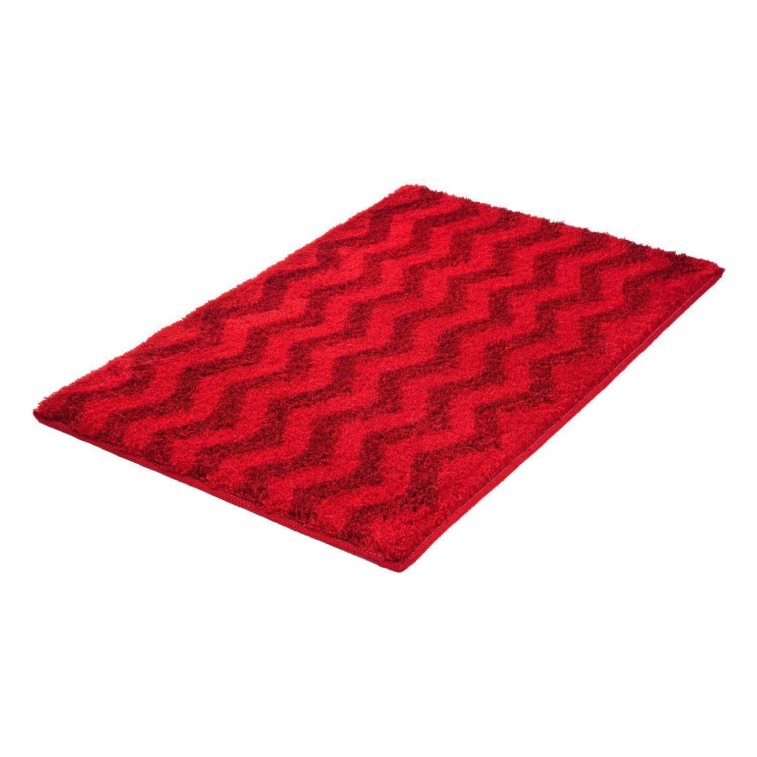 Die Badematte Kleine Wolke ZACK in Rot verbindet Komfort mit modernem Design. Mit einer Größe von 70 x 120 cm besteht sie aus Polyacryl und ist mit dezenten Zackenmotiven in Rot gestaltet. Eine rutschhemmende Beschichtung sorgt für sicheren Halt im Badezimmer. Die Florhöhe von 20 mm bietet ein angenehmes Gefühl unter den Füßen. Die Badematte ist bei 40 °C waschbar, trocknergeeignet und zudem für Fußbodenheizungen geeignet.