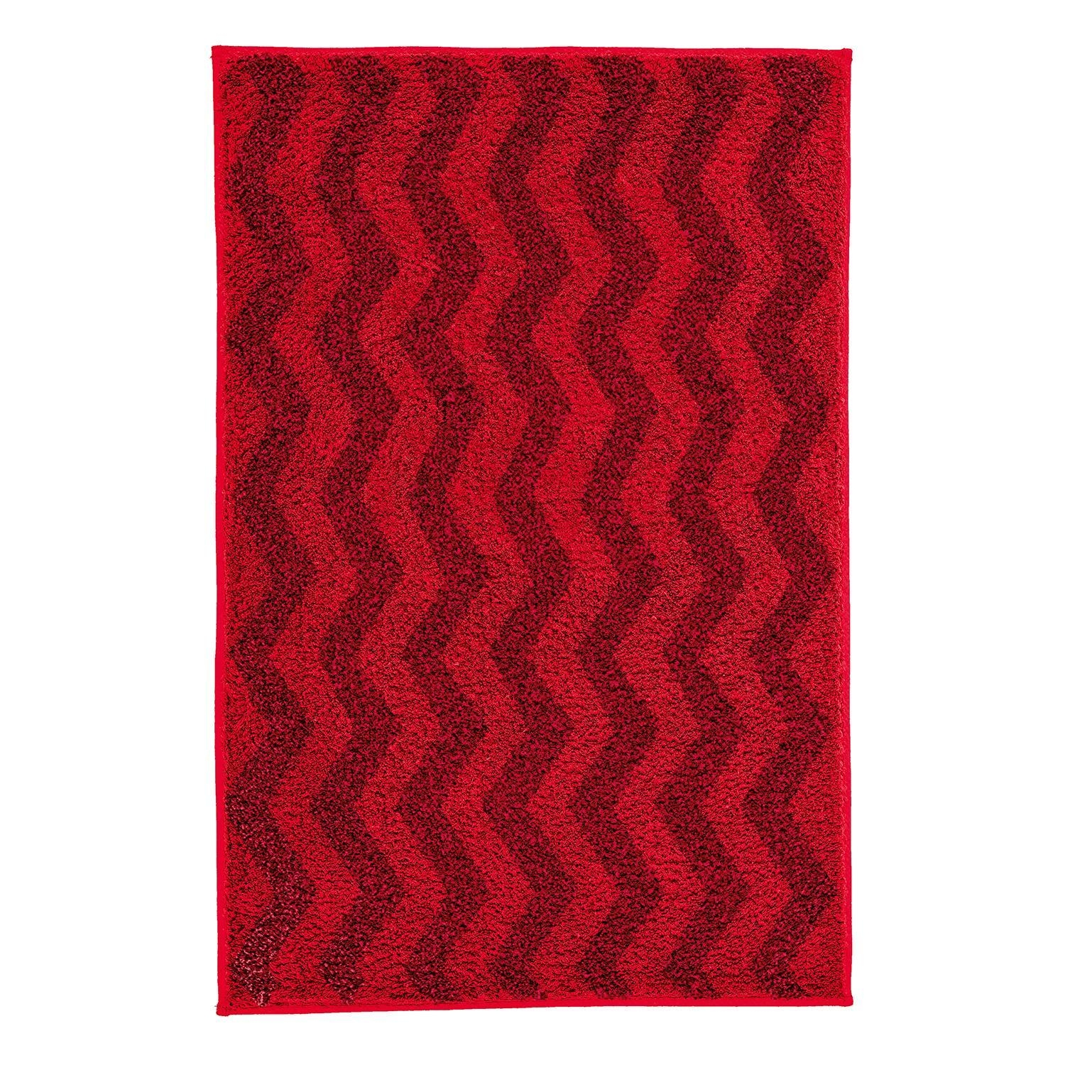Die Badematte Kleine Wolke ZACK in Rot verbindet Komfort mit modernem Design. Mit einer Größe von 55 x 65 cm besteht sie aus Polyacryl und ist mit dezenten Zackenmotiven in Rot gestaltet. Eine rutschhemmende Beschichtung sorgt für sicheren Halt im Badezimmer. Die Florhöhe von 20 mm bietet ein angenehmes Gefühl unter den Füßen. Die Badematte ist bei 40 °C waschbar, trocknergeeignet und zudem für Fußbodenheizungen geeignet.