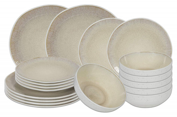 - Kombiservice aus Keramik in beige und weiß mit Reaktivglasur