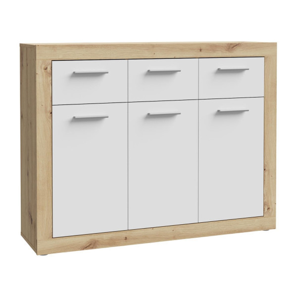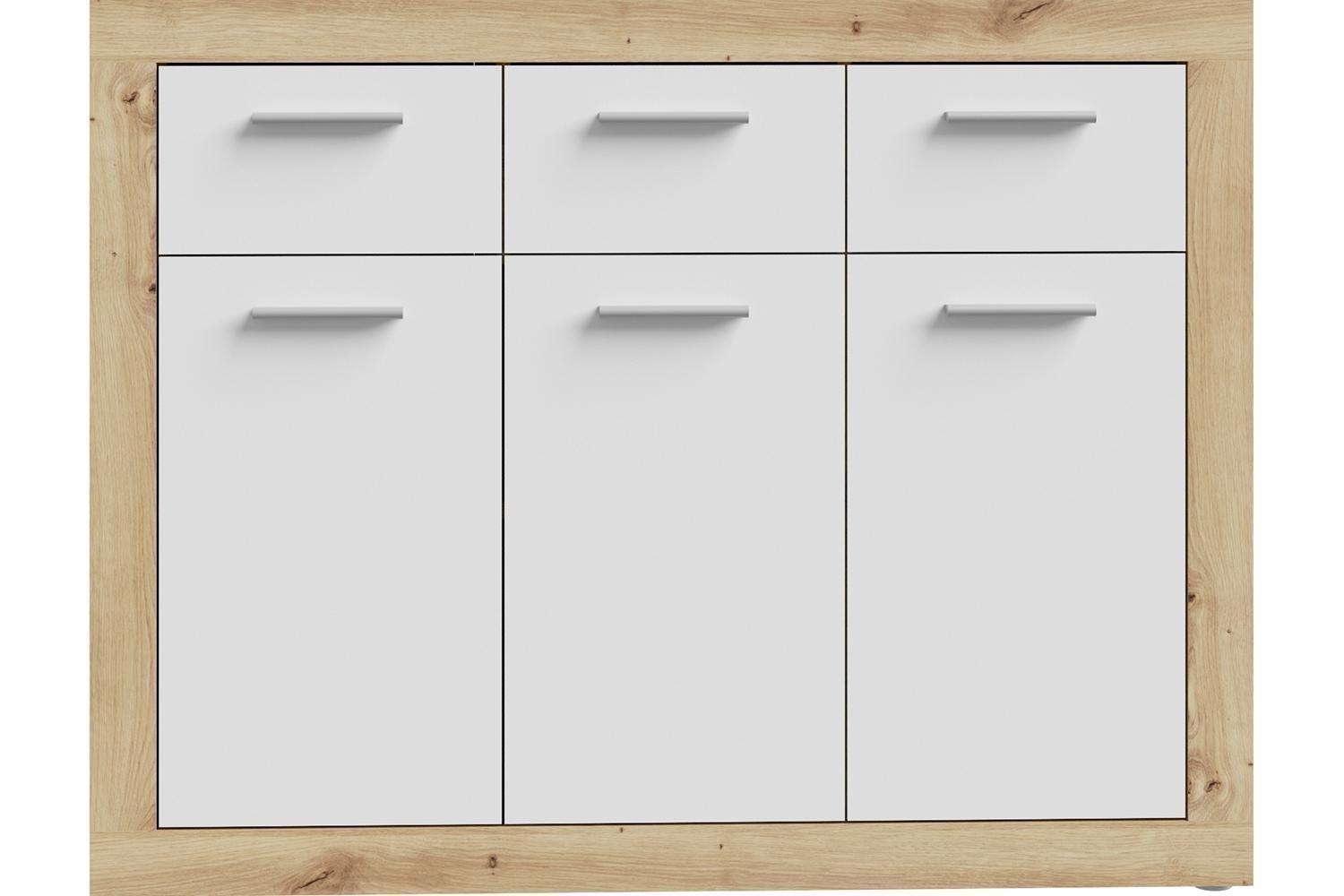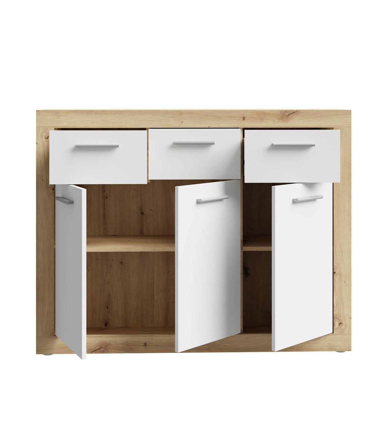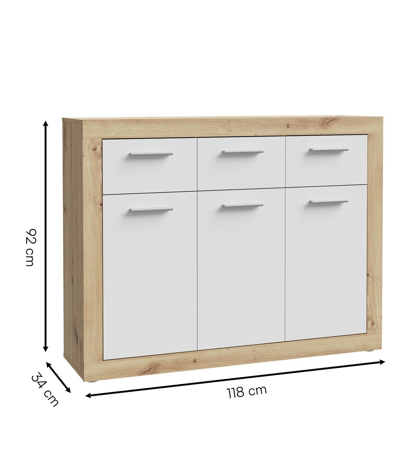 118 x 92 cm - 3 Türen - 3 Schubladen - Artisan Eiche Dekor - Weiß matt