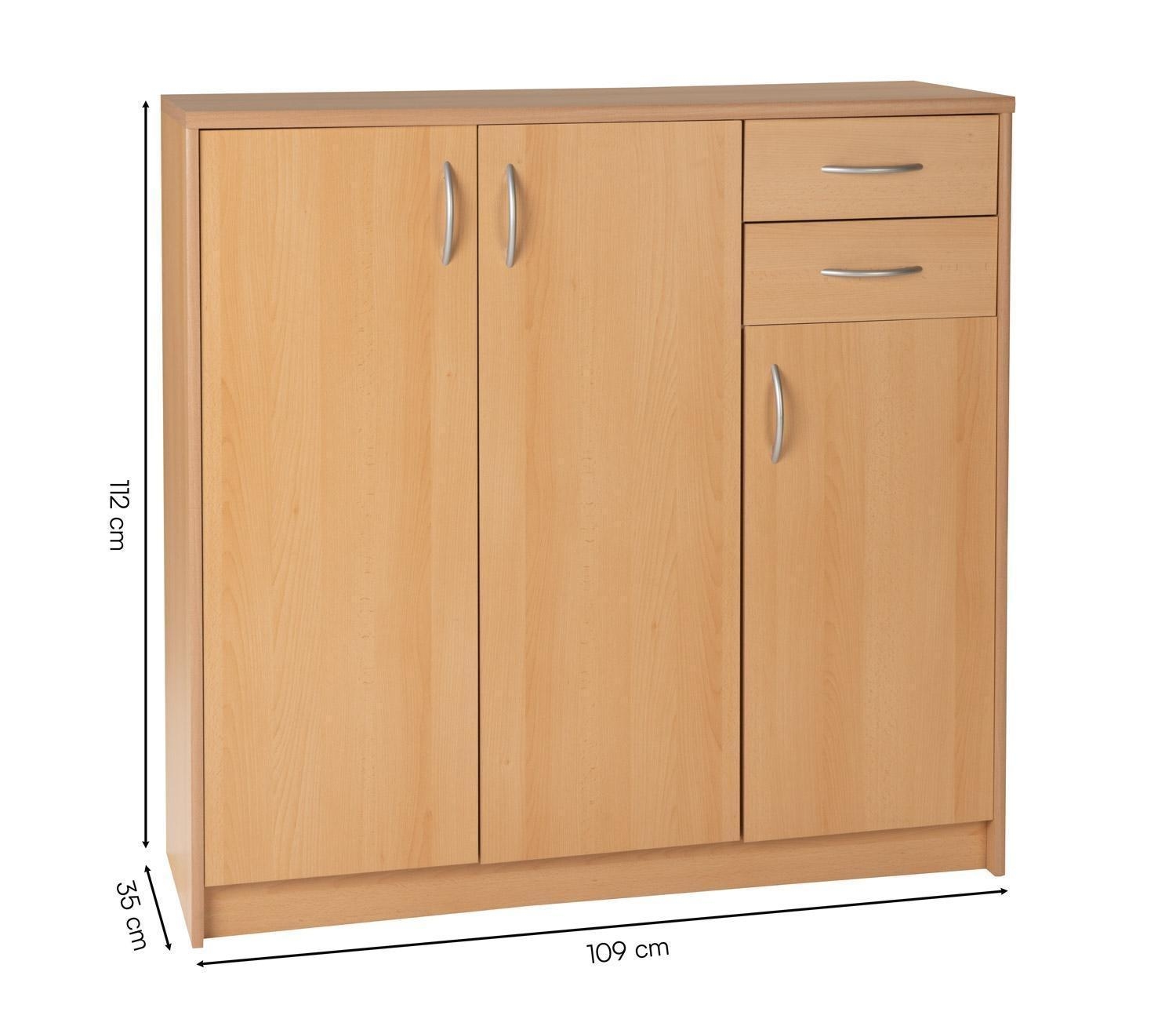 Buchedekor - 109 x 112 cm - 2 Schubladen - 3 Türen - 5 Einlegeböden