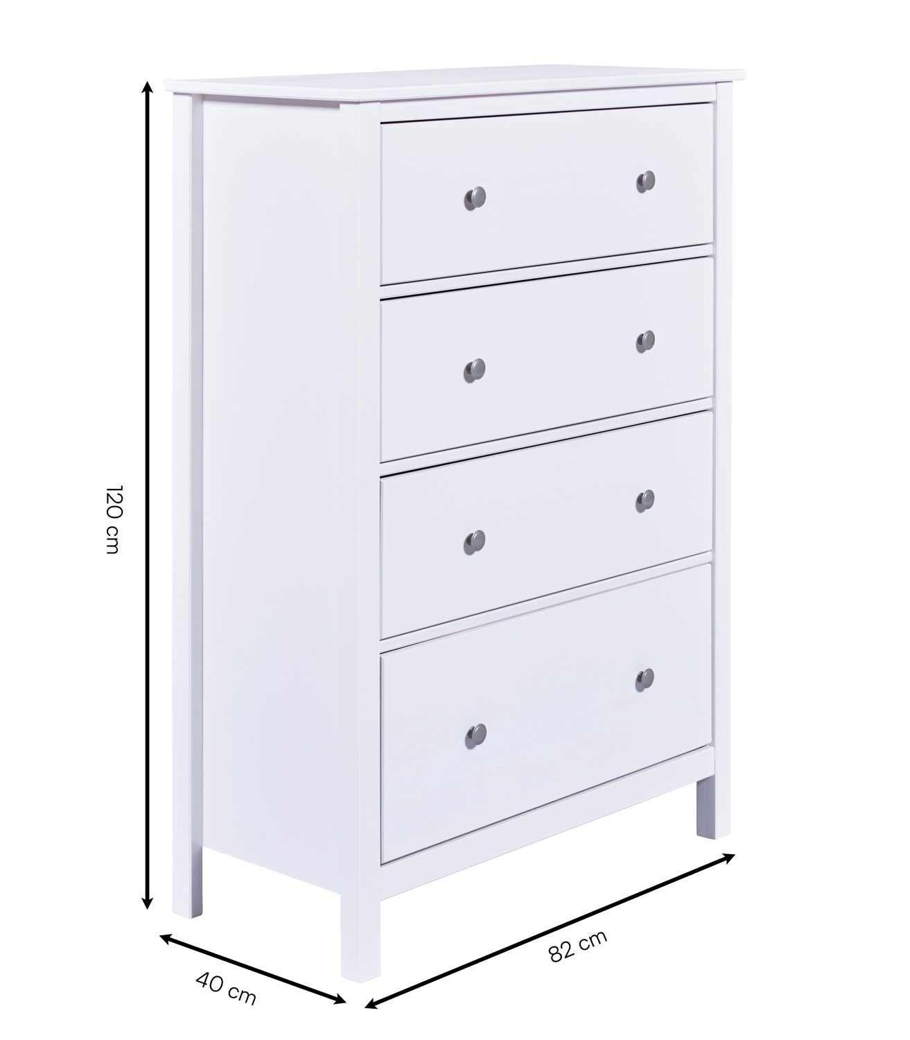 82 x 120 cm - 4 Schubladen - Weiß - Kiefernholz massiv