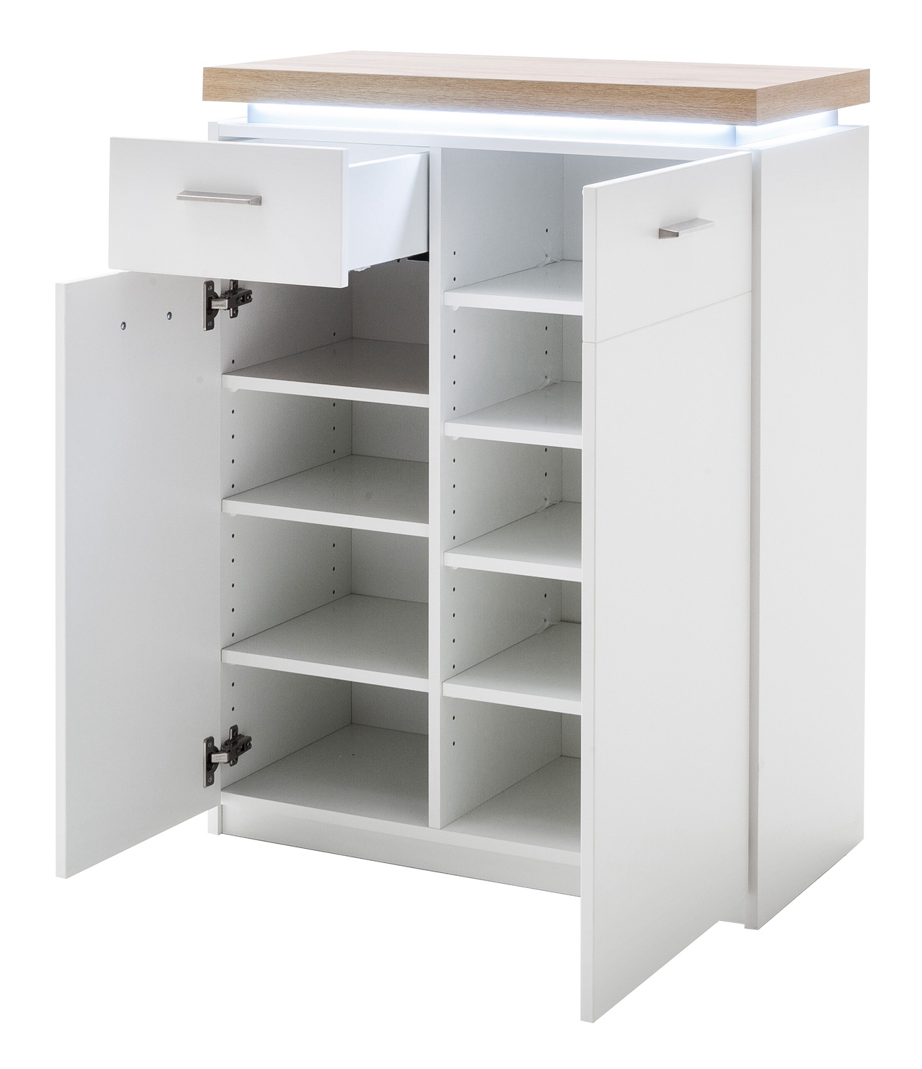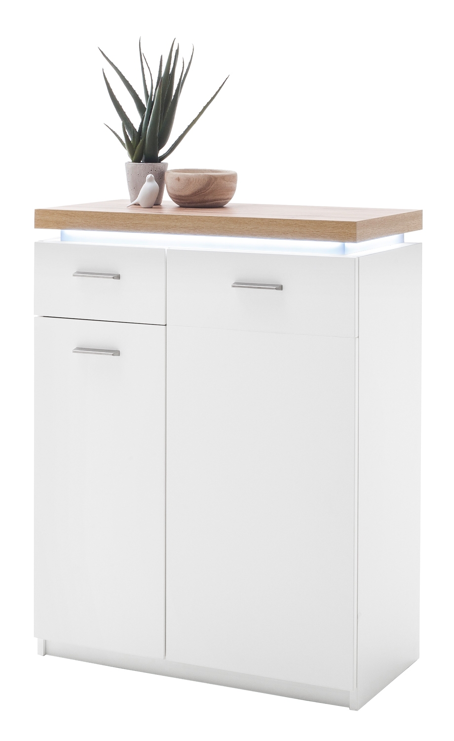 | Lieferumfang: | 1 Kommode mit 1 Tür und 2 Schubladen. Die LED-Beleuchtung ist enthalten |
