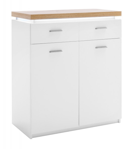 Weiß - Wotan Eiche Dekor - B 85 cm - 2 Türen - 2 Schubladen