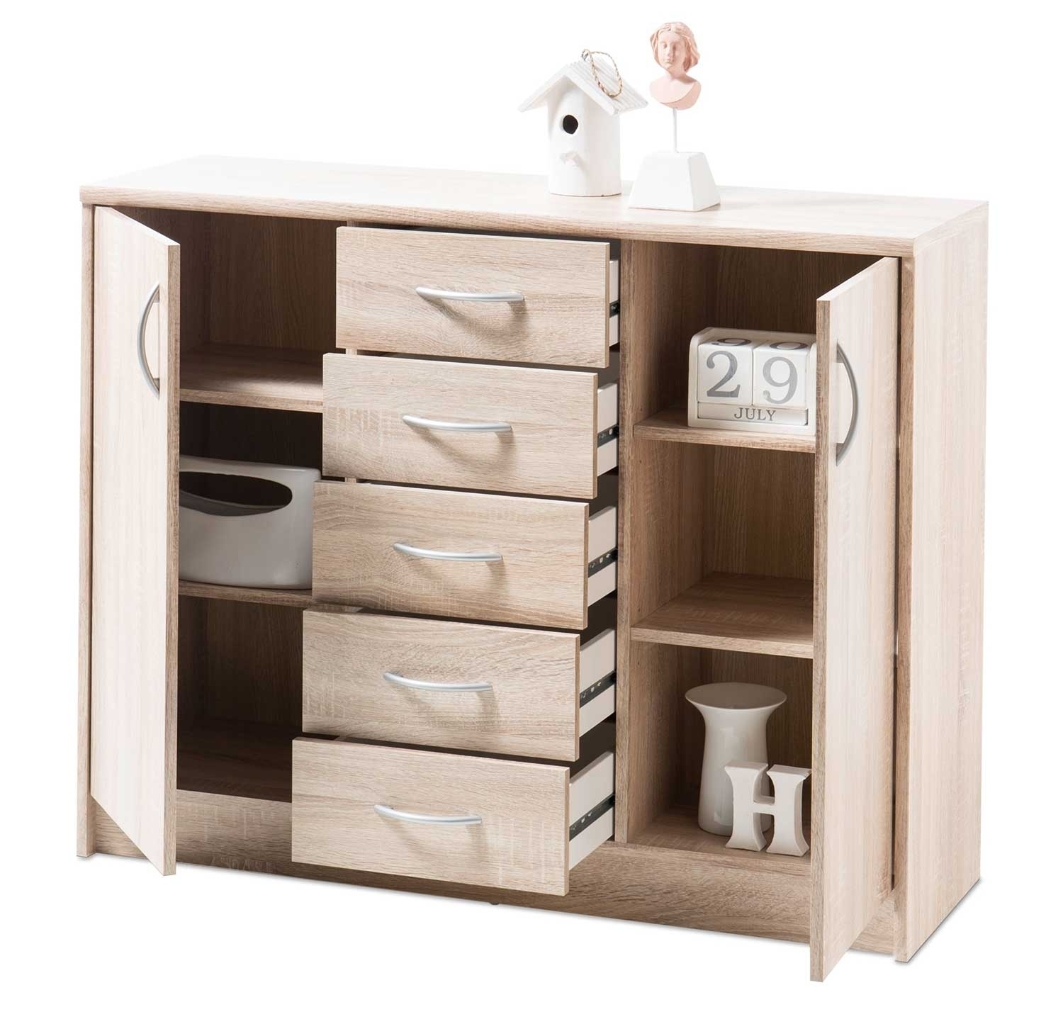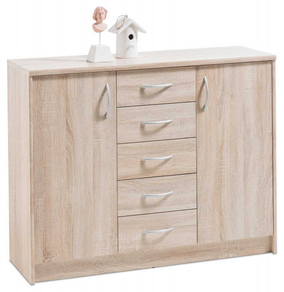Eichedekor Sonoma - 109 x 86 cm - 2 Türen - 5 Schubladen - 4 Einlegeböden