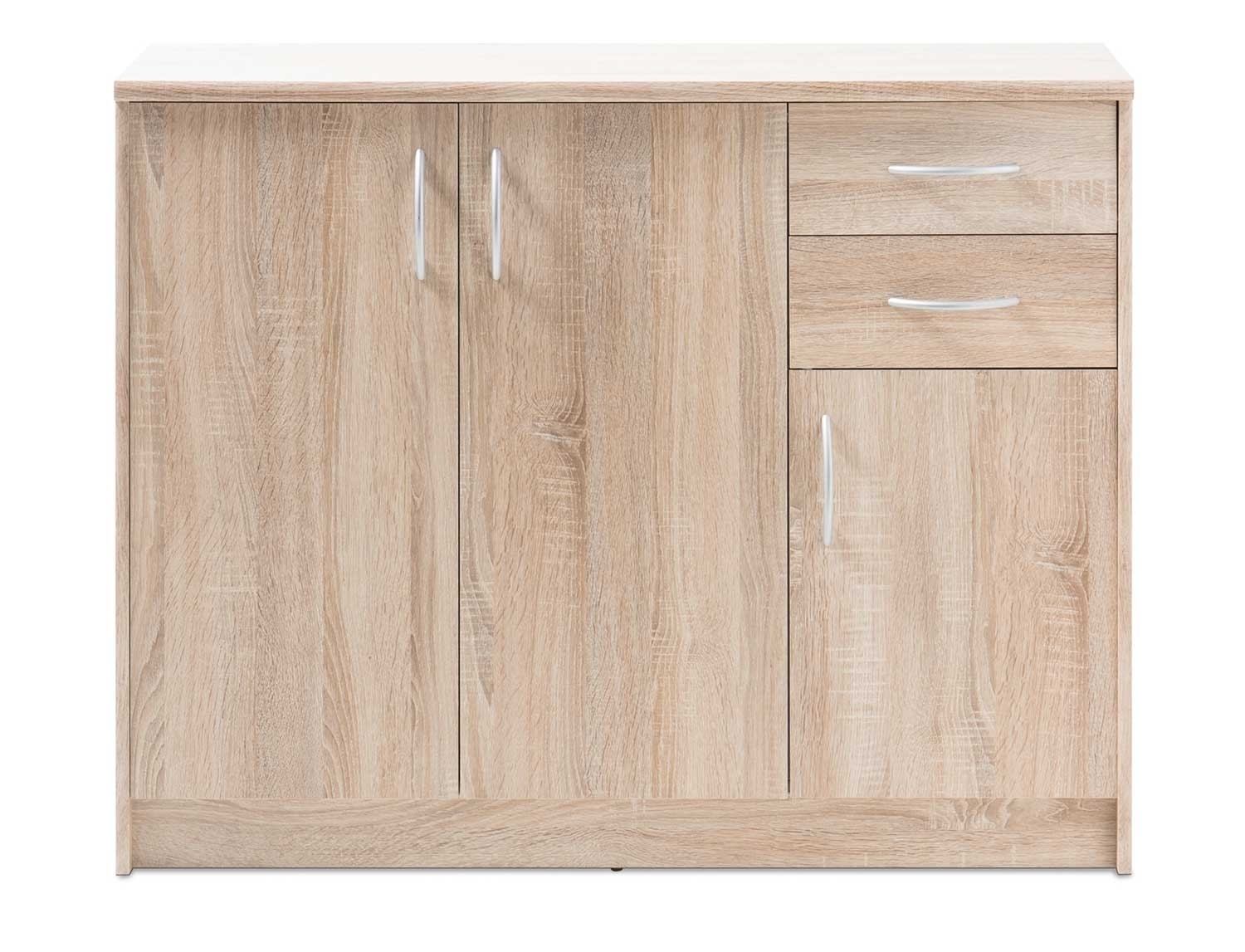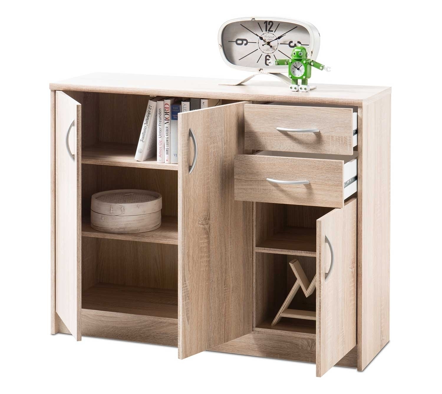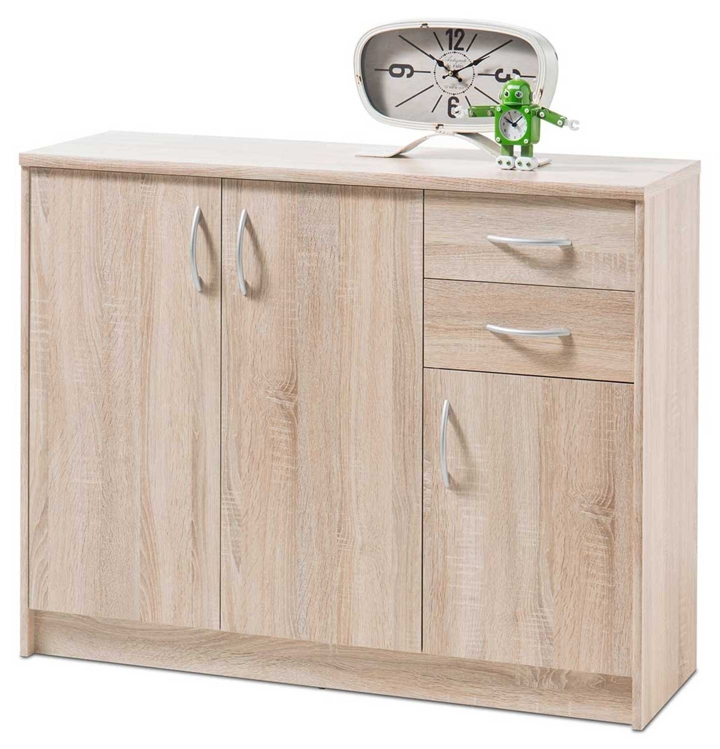 Die Kommode in Eichedekor Sonoma verfügt über drei 3-fach höhenverstellbare Einlegeböden. Dies ermöglicht eine optimale Anpassung an die jeweiligen Bedürfnisse.