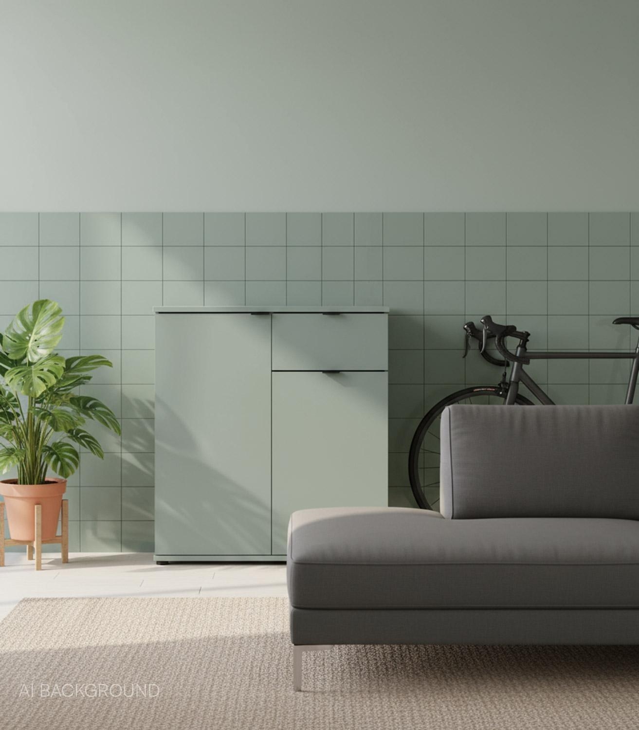 80 x 82 cm - 2 Türen - 1 Schublade - Salbeigrün matt