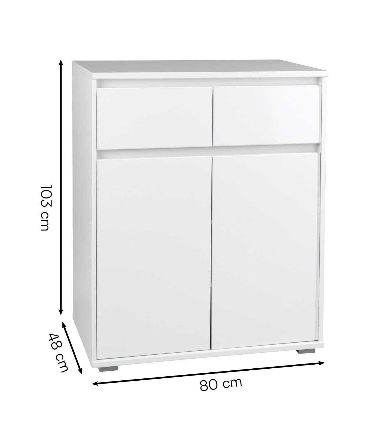 Weiß matt - B 80 cm - 2 Türen - 2 Schubladen