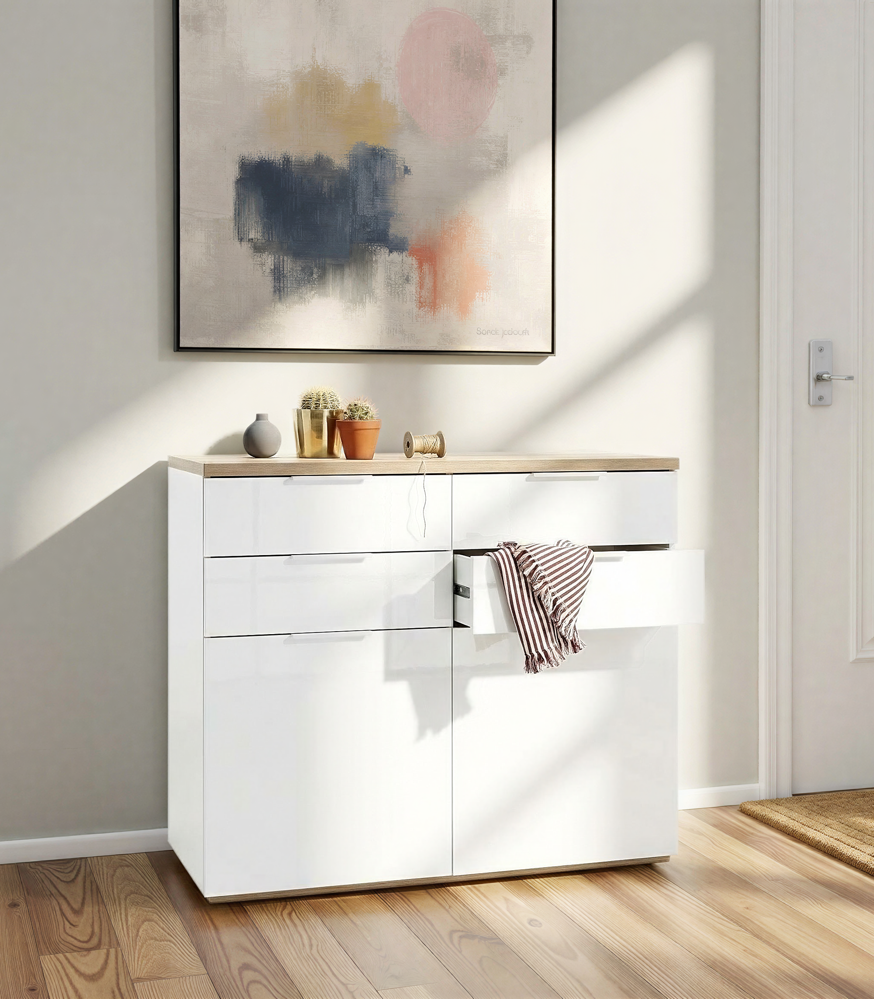 - Kommode in Weiß Hochglanz