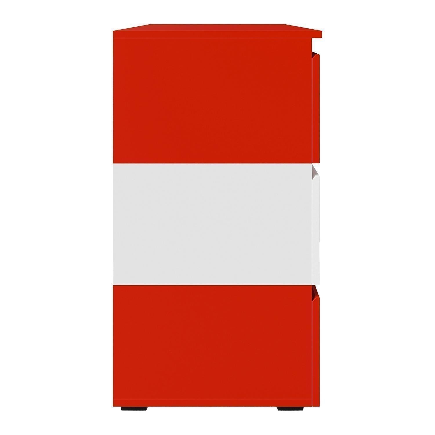 80 x 77 cm - 3 Schubladen - Rot - Weiß - mit LED-Rückwandbeleuchtung