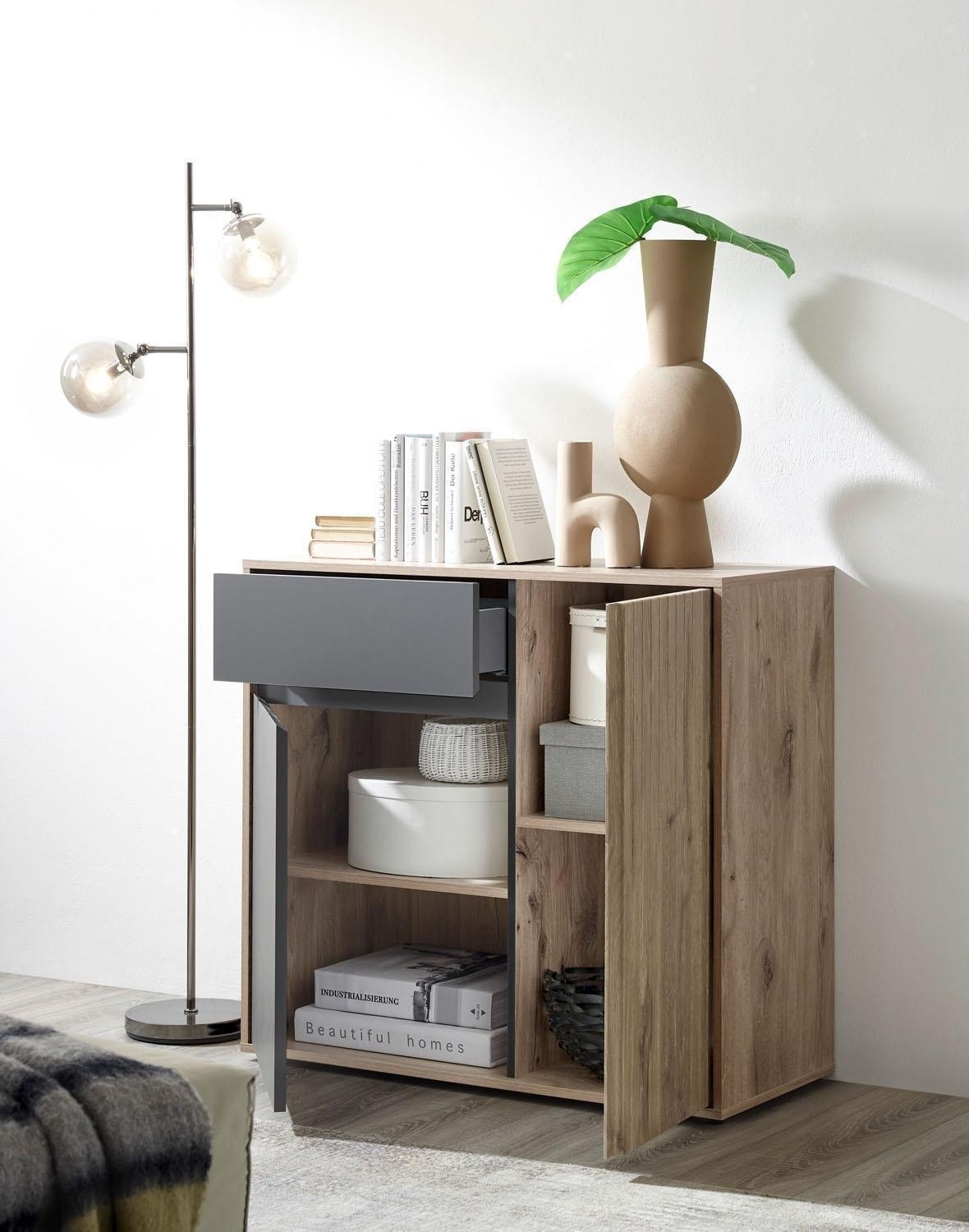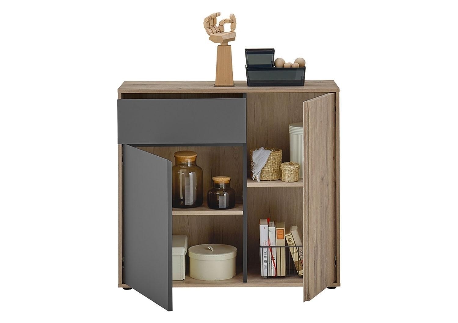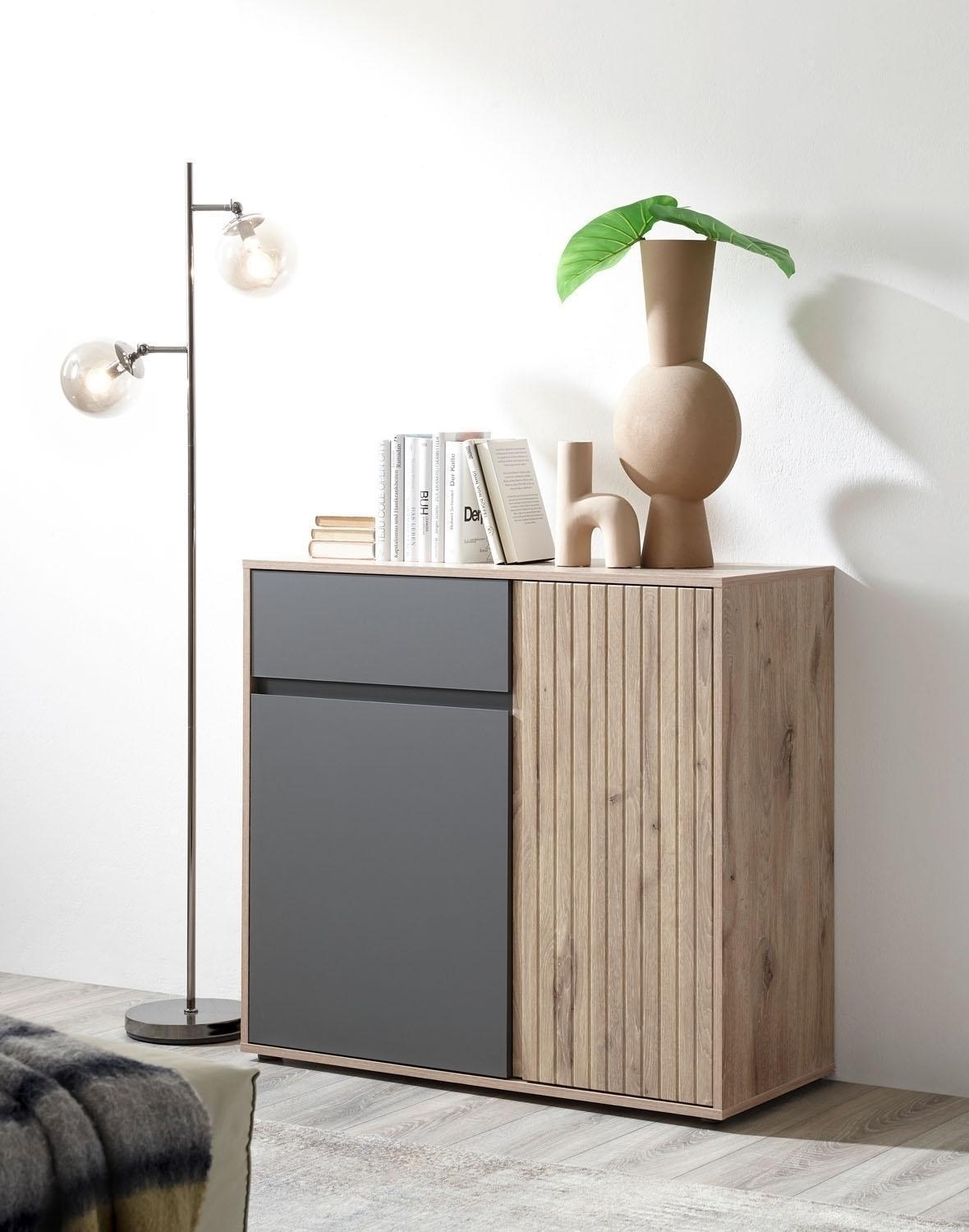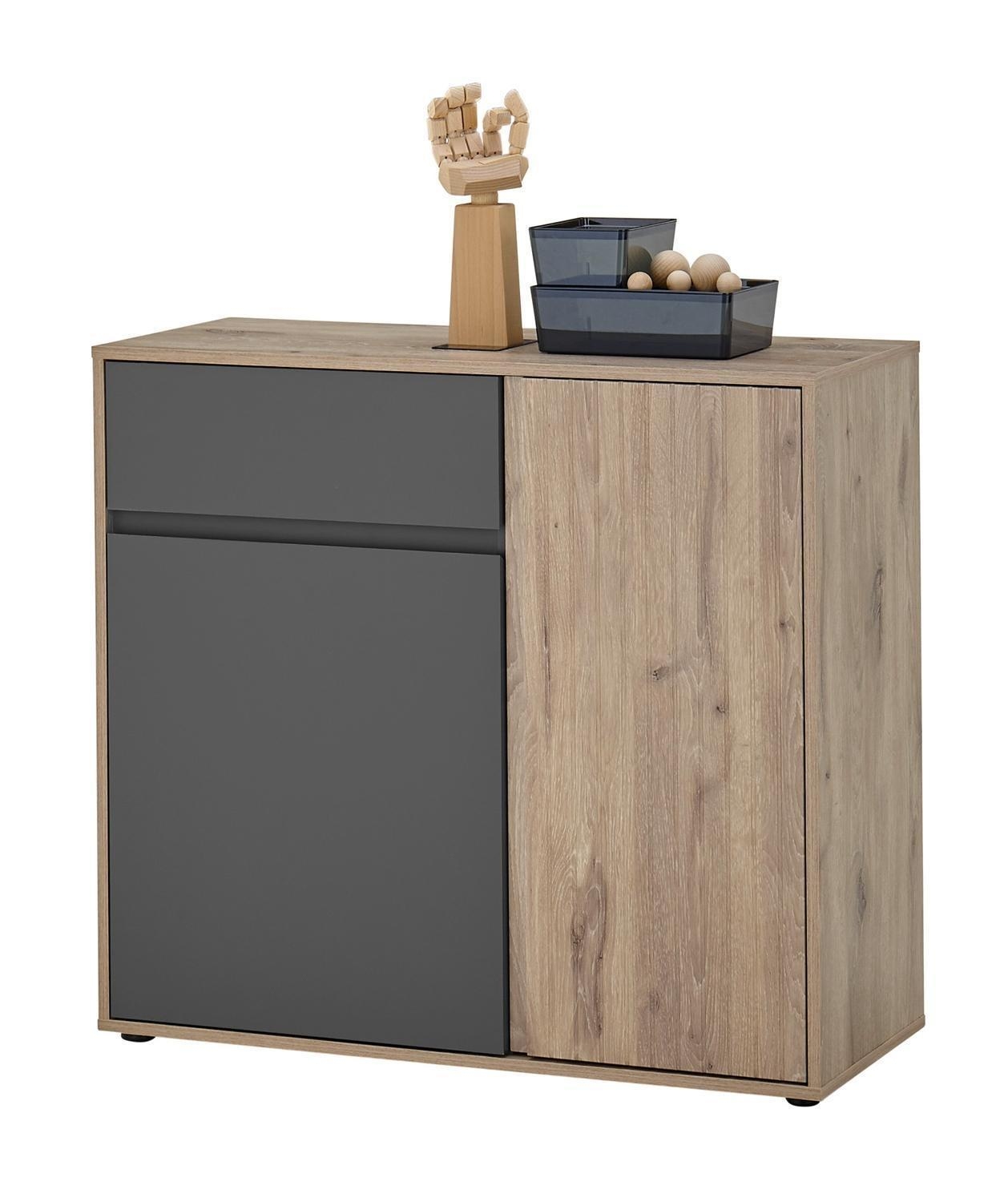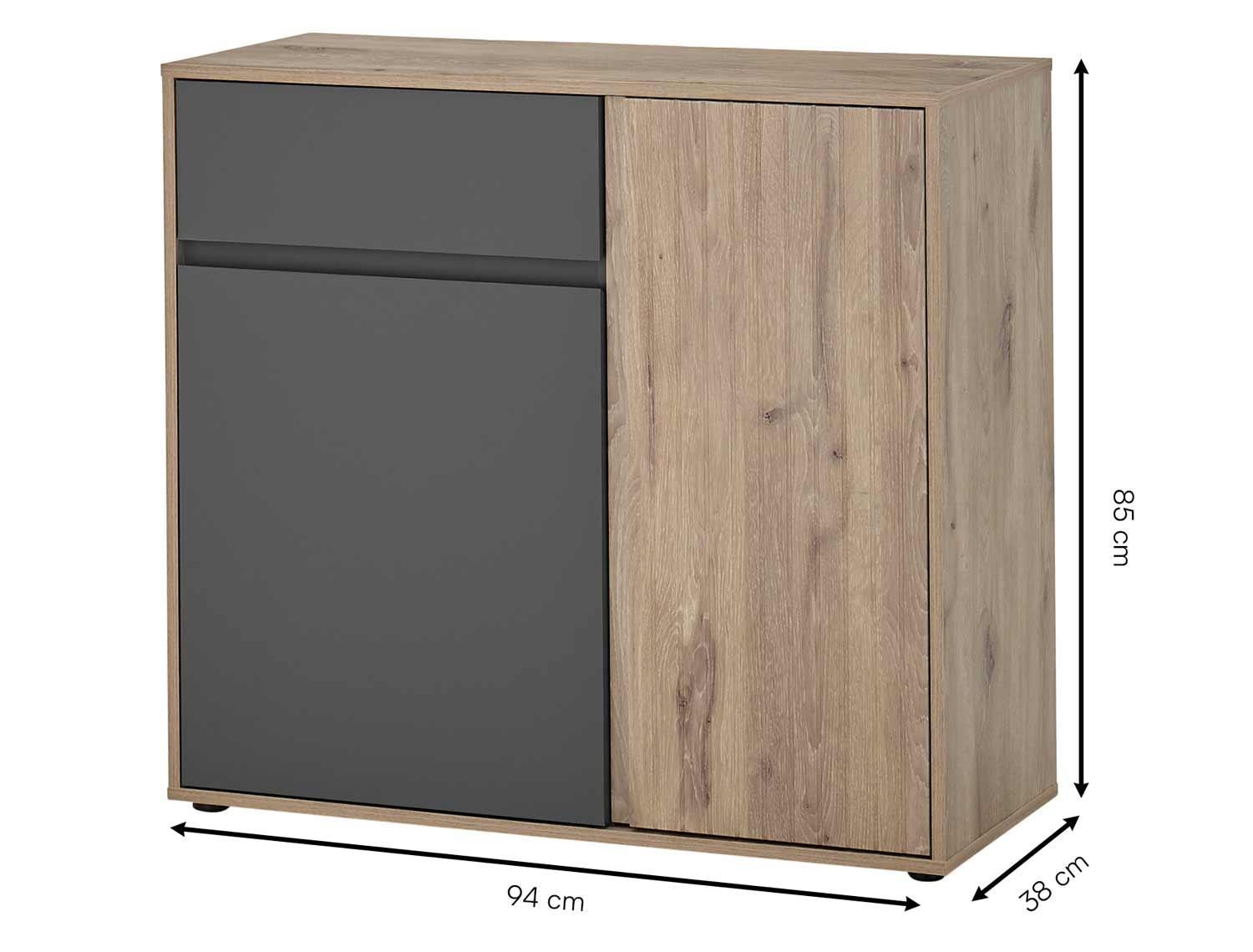94 x 85 cm - 2 Türen - 1 Schublade - Viking Eiche Dekor - Grau matt