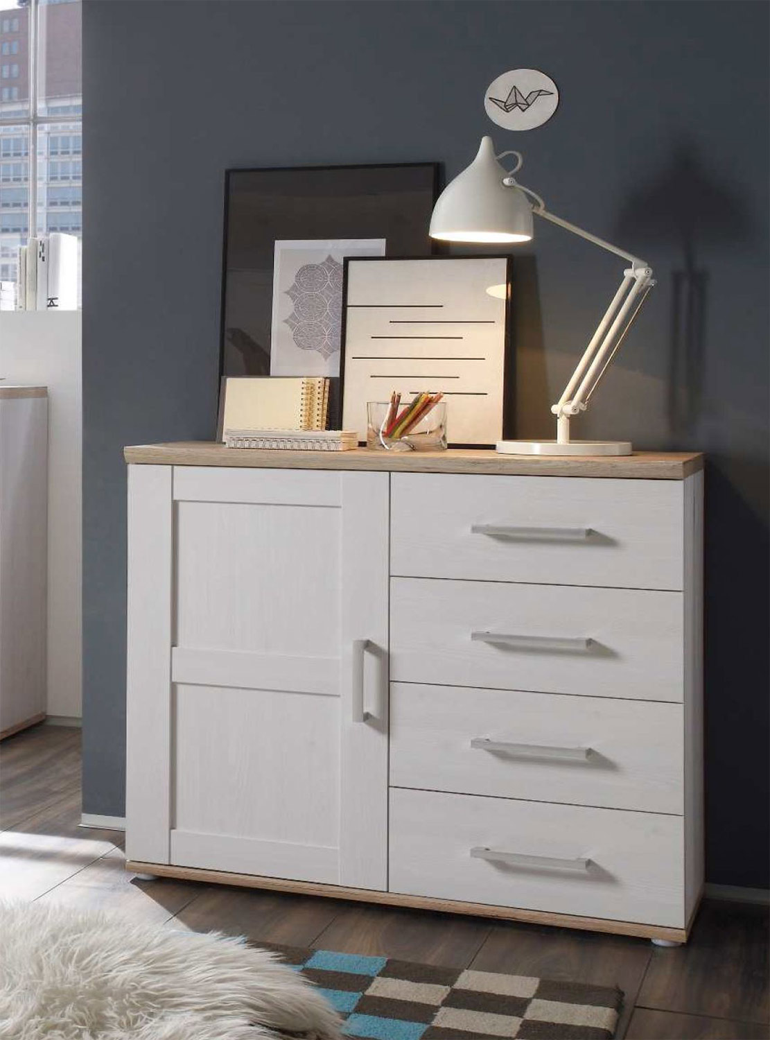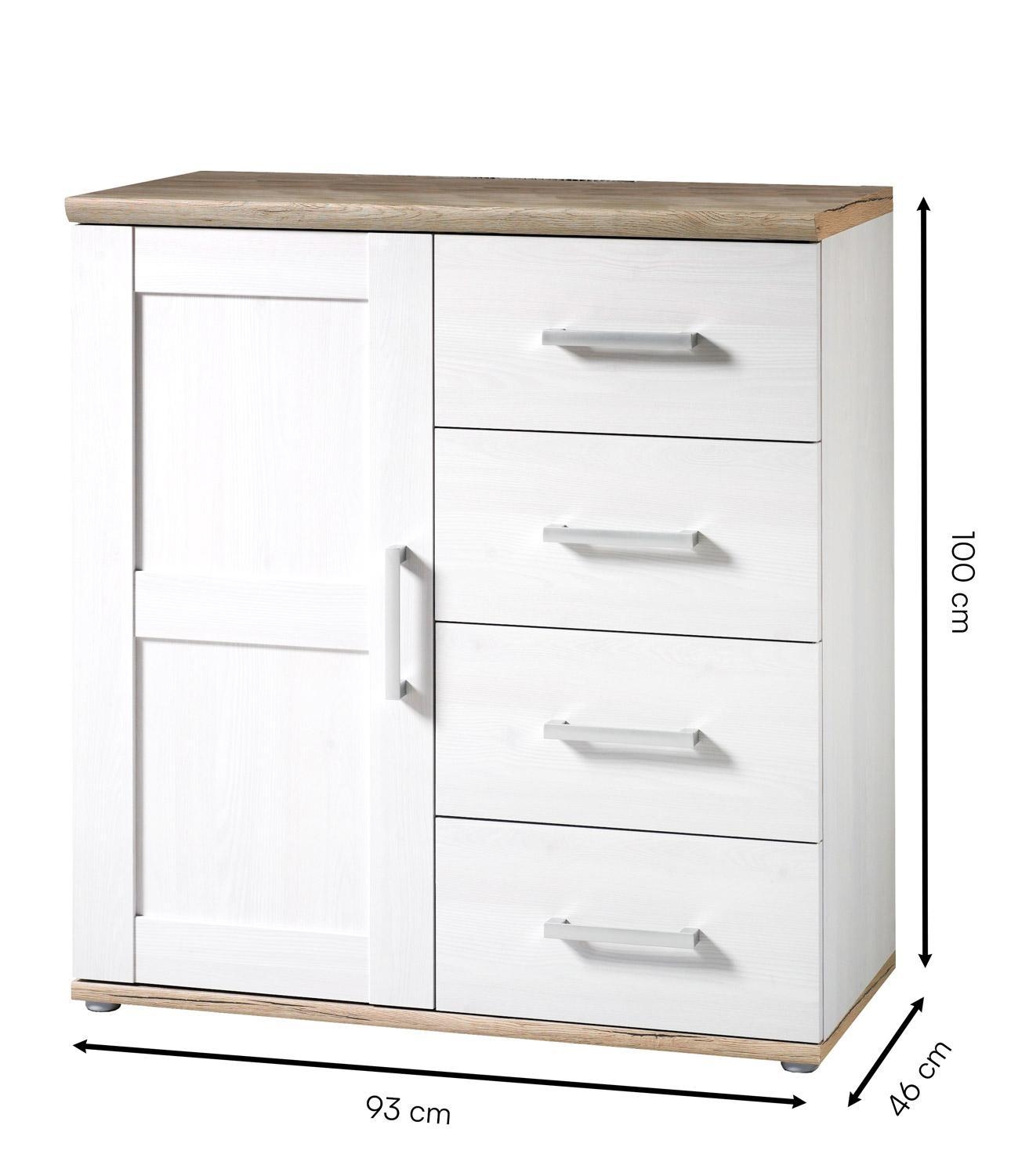 Sibiu Lärche Dekor - Weiß - B 93 cm - 1 Tür - 4 Schubladen
