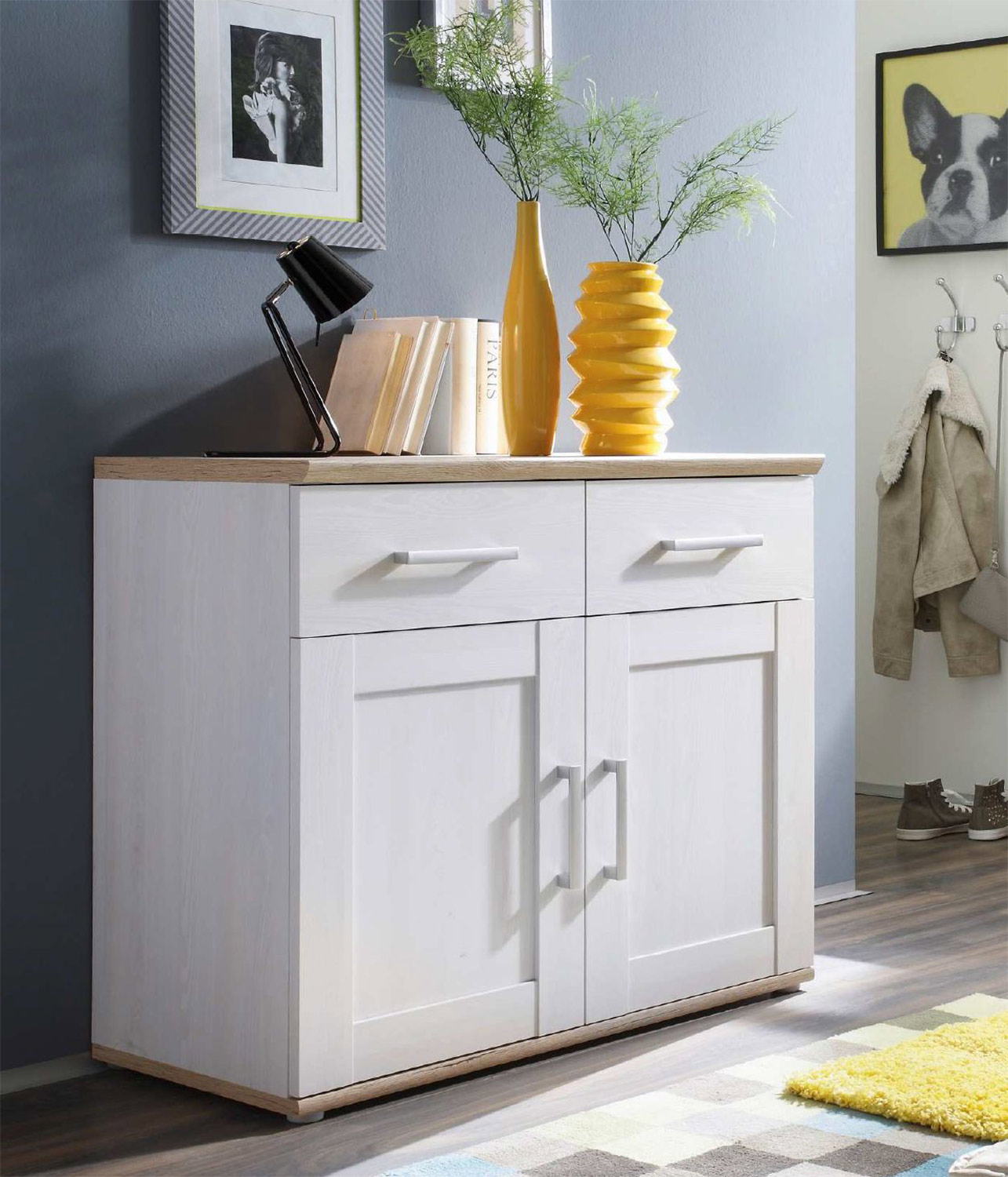 | Lieferumfang: | 1 Kommode mit 2 Türen und 2 Schubladen |