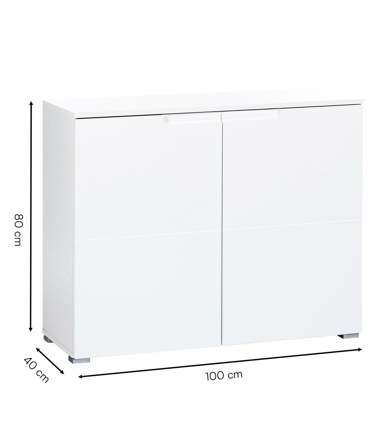 | Lieferumfang: | 1 Kommode mit 2 Türen und 2 Einlegeböden |