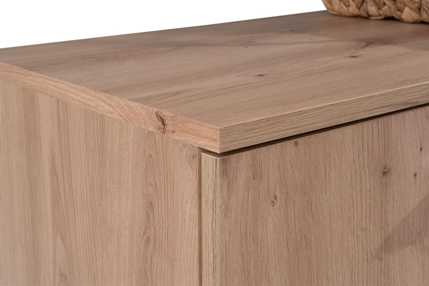 Die Kommode in Artisan Eiche Dekor verfügt über einen 3-fach höhenverstellbaren Einlegeboden. Dies ermöglicht eine optimale Anpassung an die jeweiligen Bedürfnisse.
