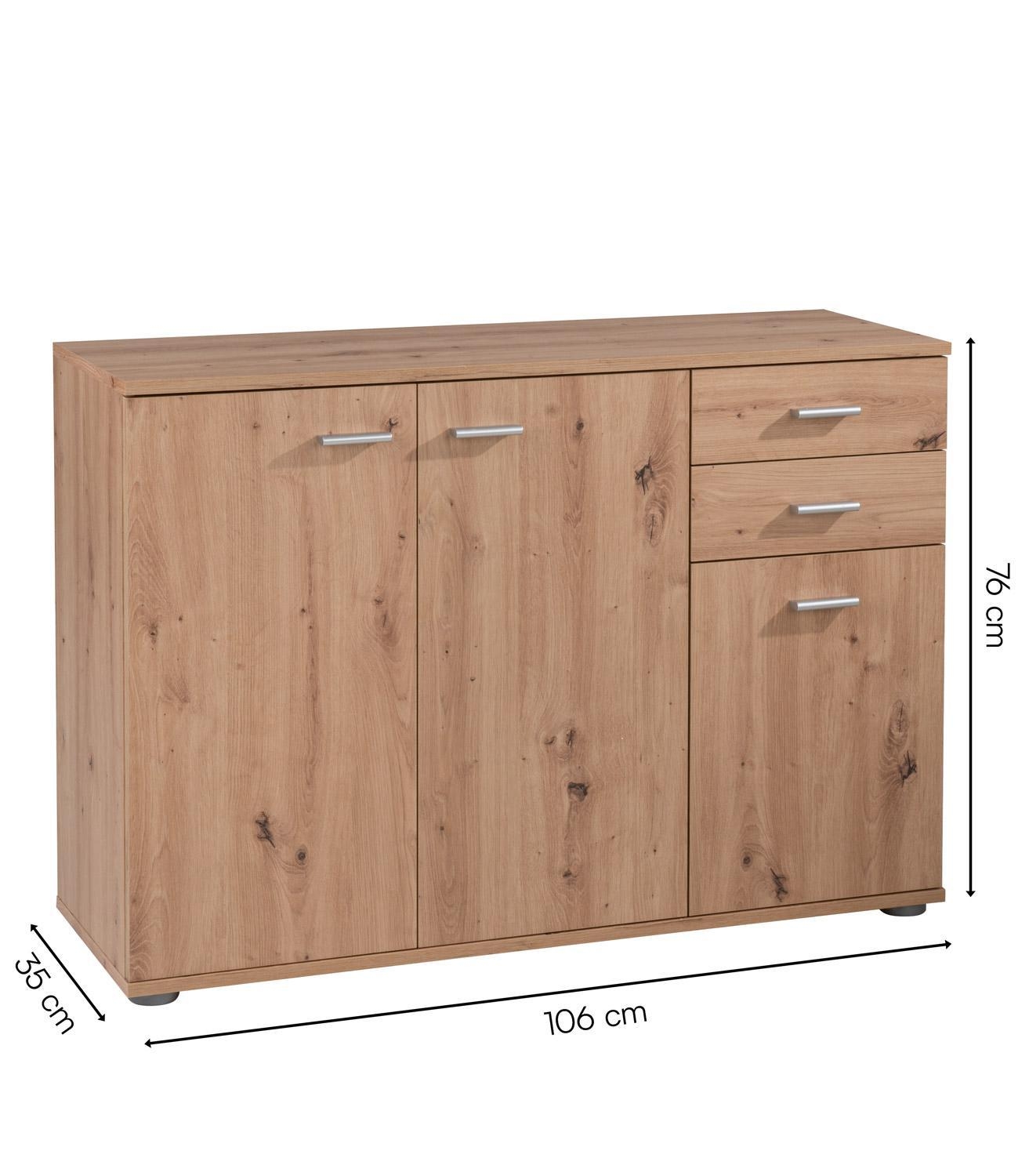 Artisan Eiche Dekor - B 106 cm - 3 Türen - 2 Schubladen - 1 Einlegeboden