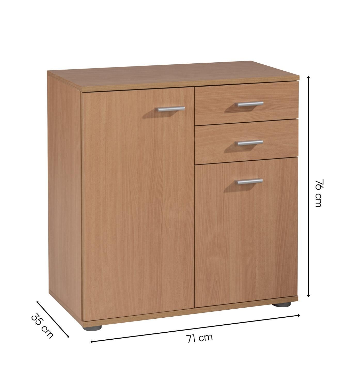 Buche Dekor - B 71 cm - 2 Türen - 2 Schubladen - 1 Einlegeboden