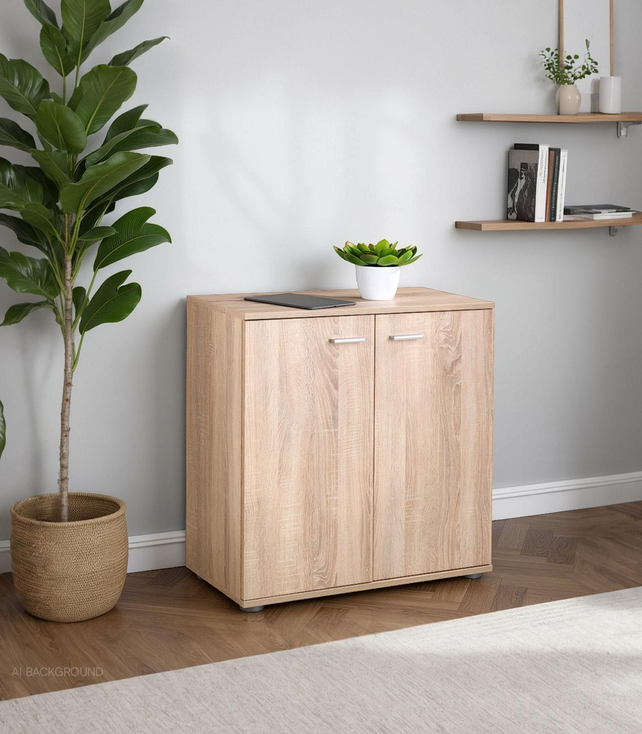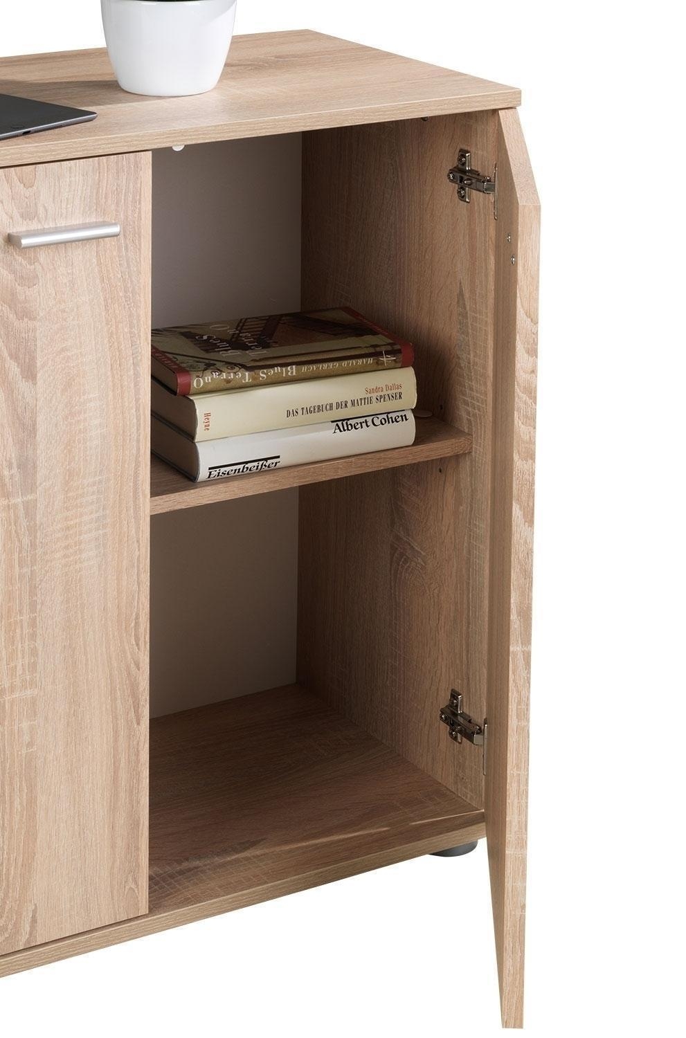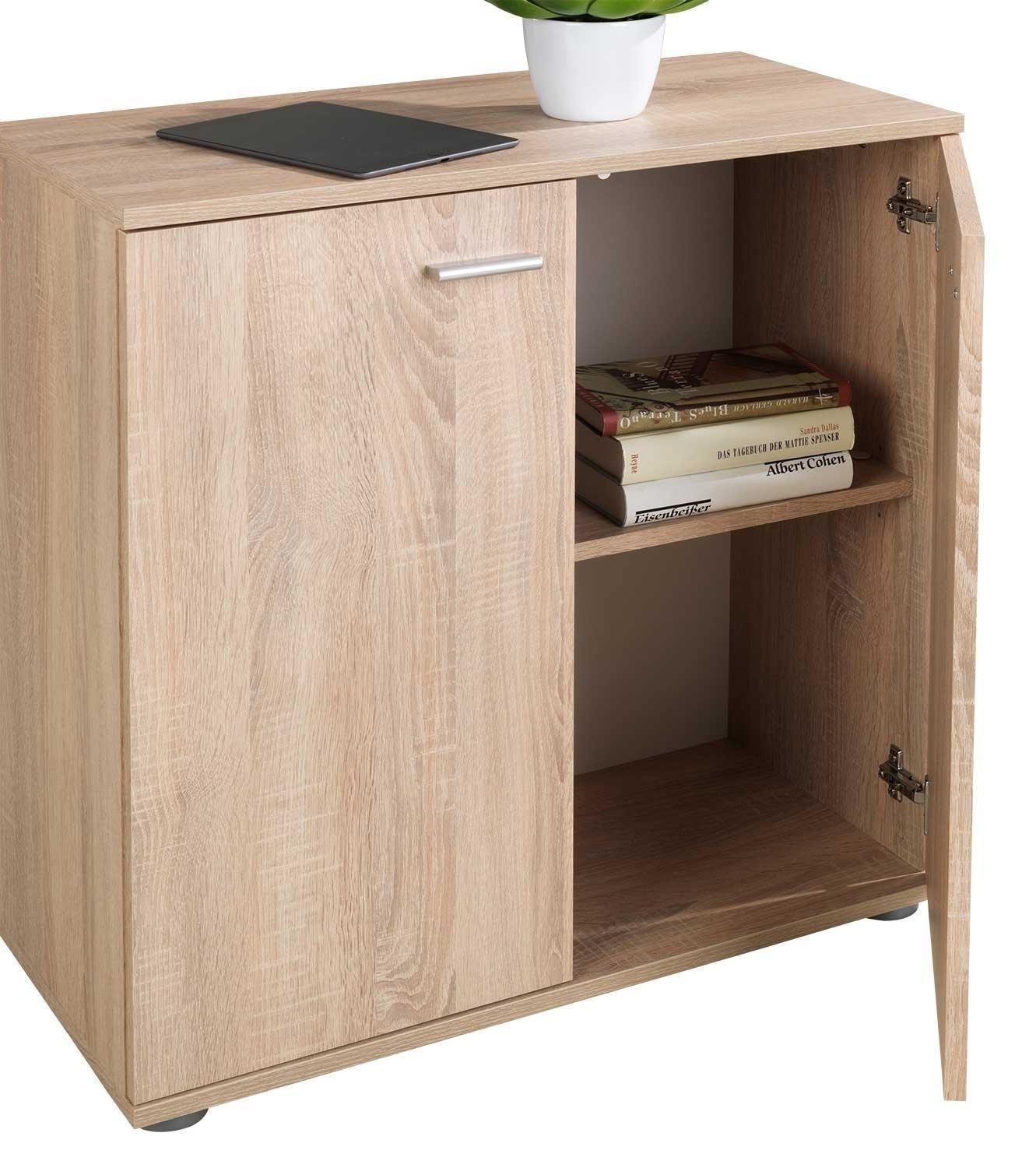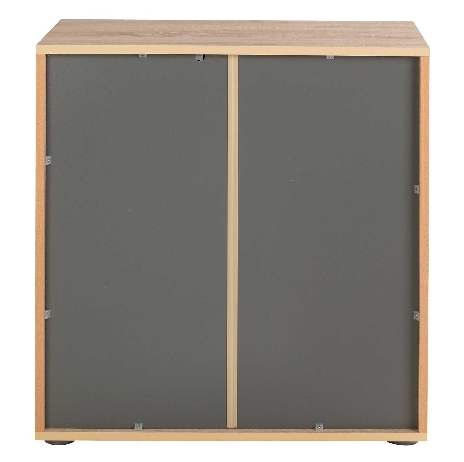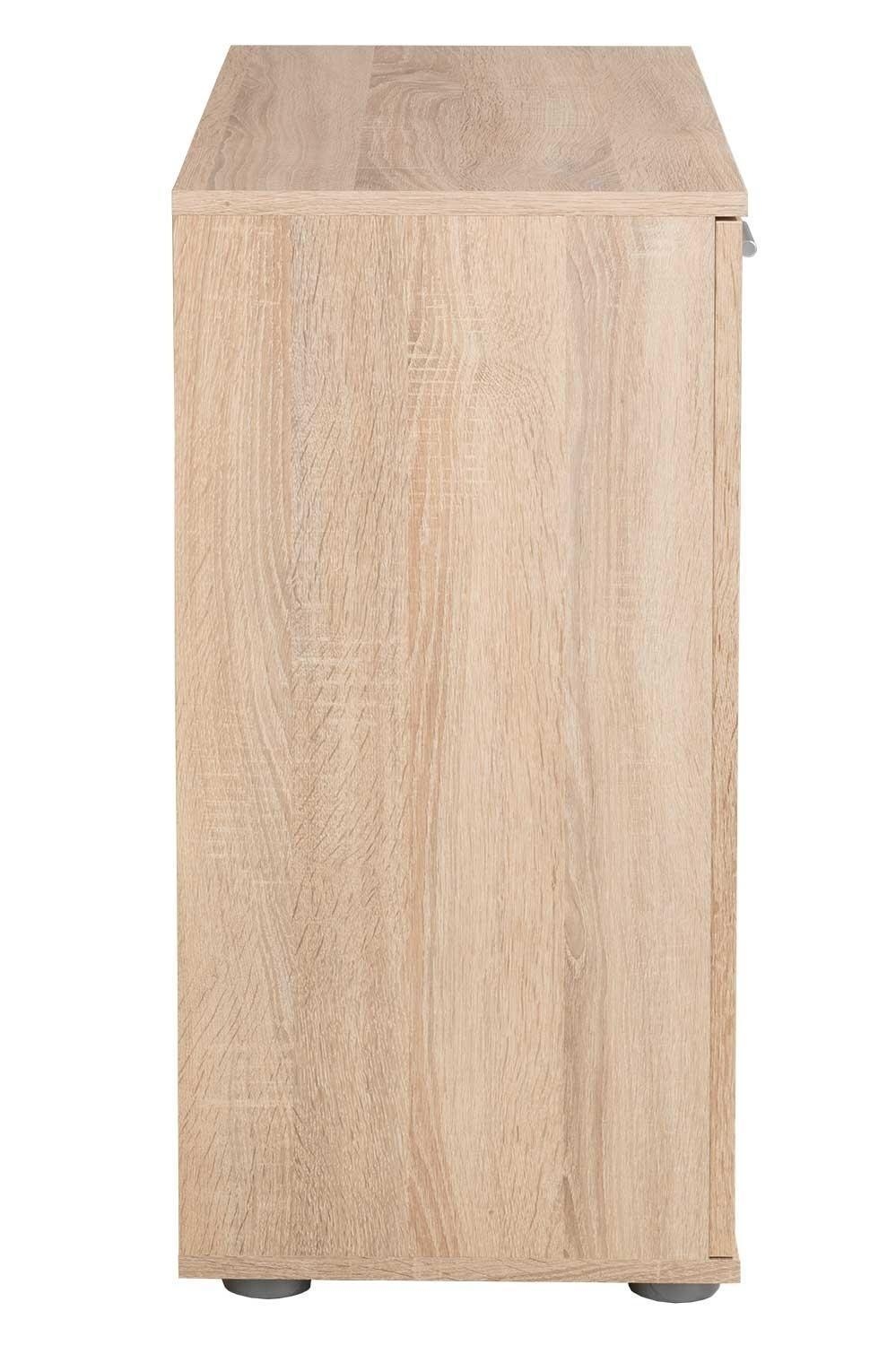 Die Kommode in Eiche Sonoma Dekor verfügt über einen 3-fach höhenverstellbaren Einlegeboden. Dies ermöglicht eine optimale Anpassung an die jeweiligen Bedürfnisse.
