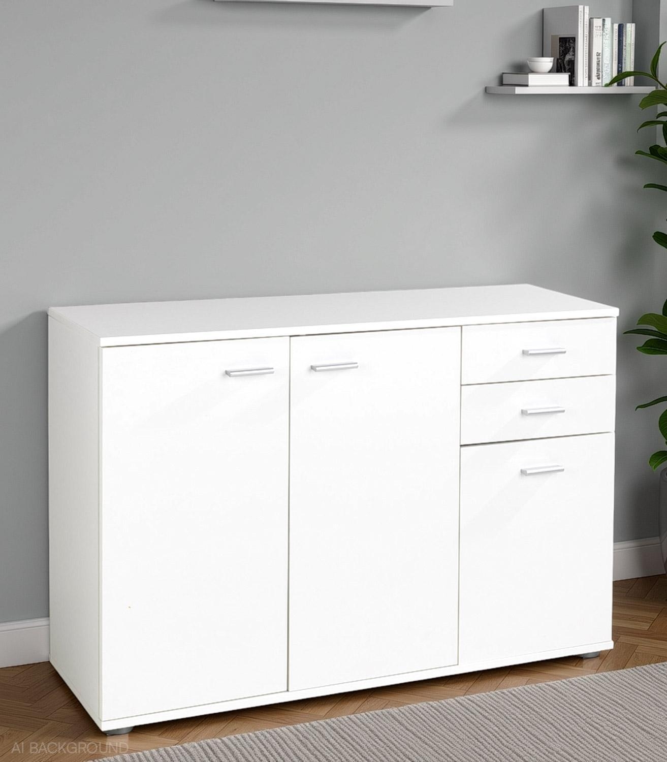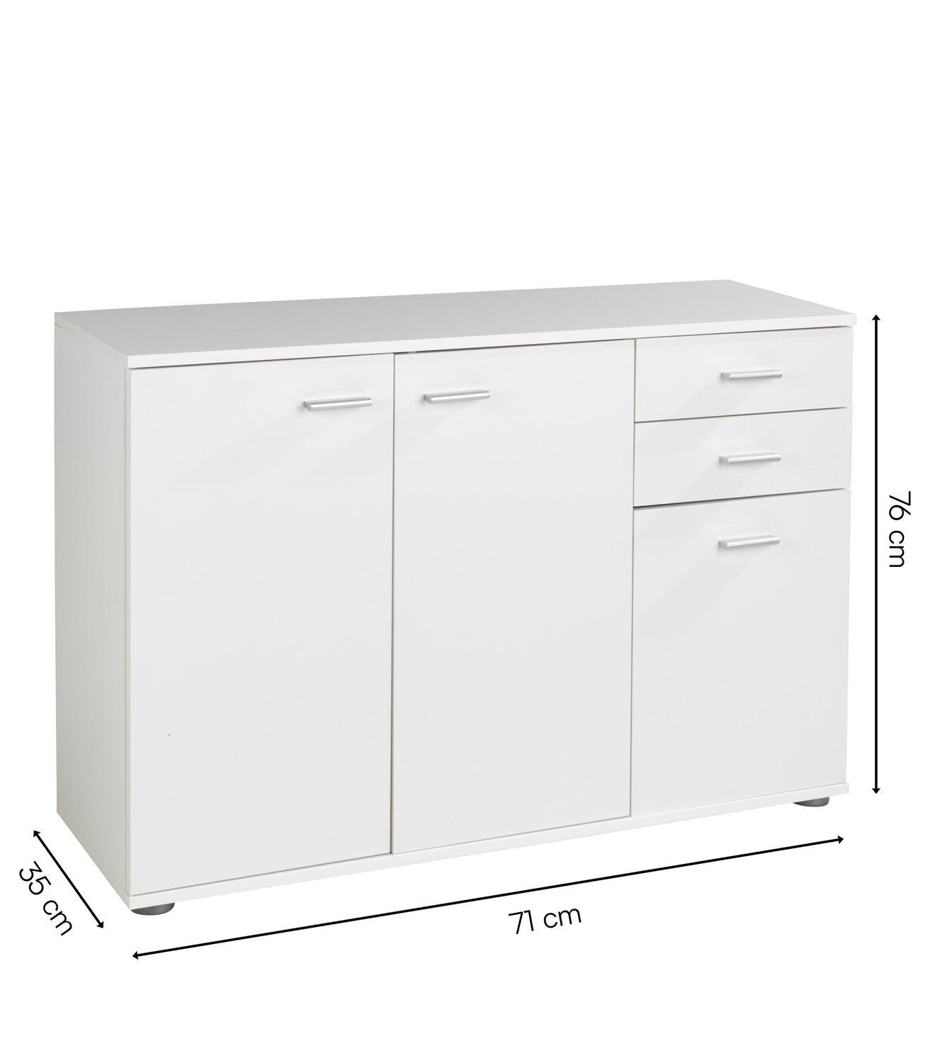 Weiß - B 106 cm - drei Türen - zwei Schubladen - ein Einlegeboden