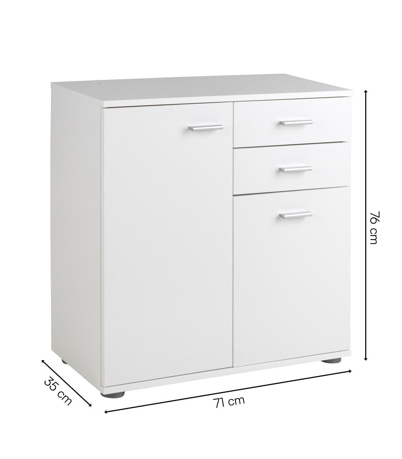 Weiß - B 71 cm - zwei Türen - zwei Schubladen - ein Einlegeboden