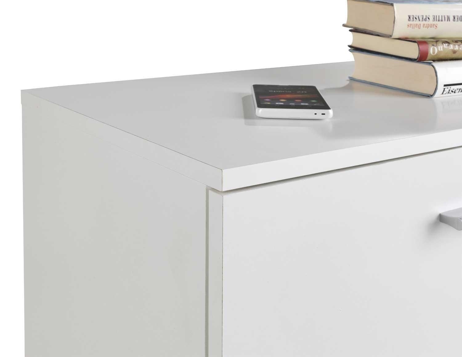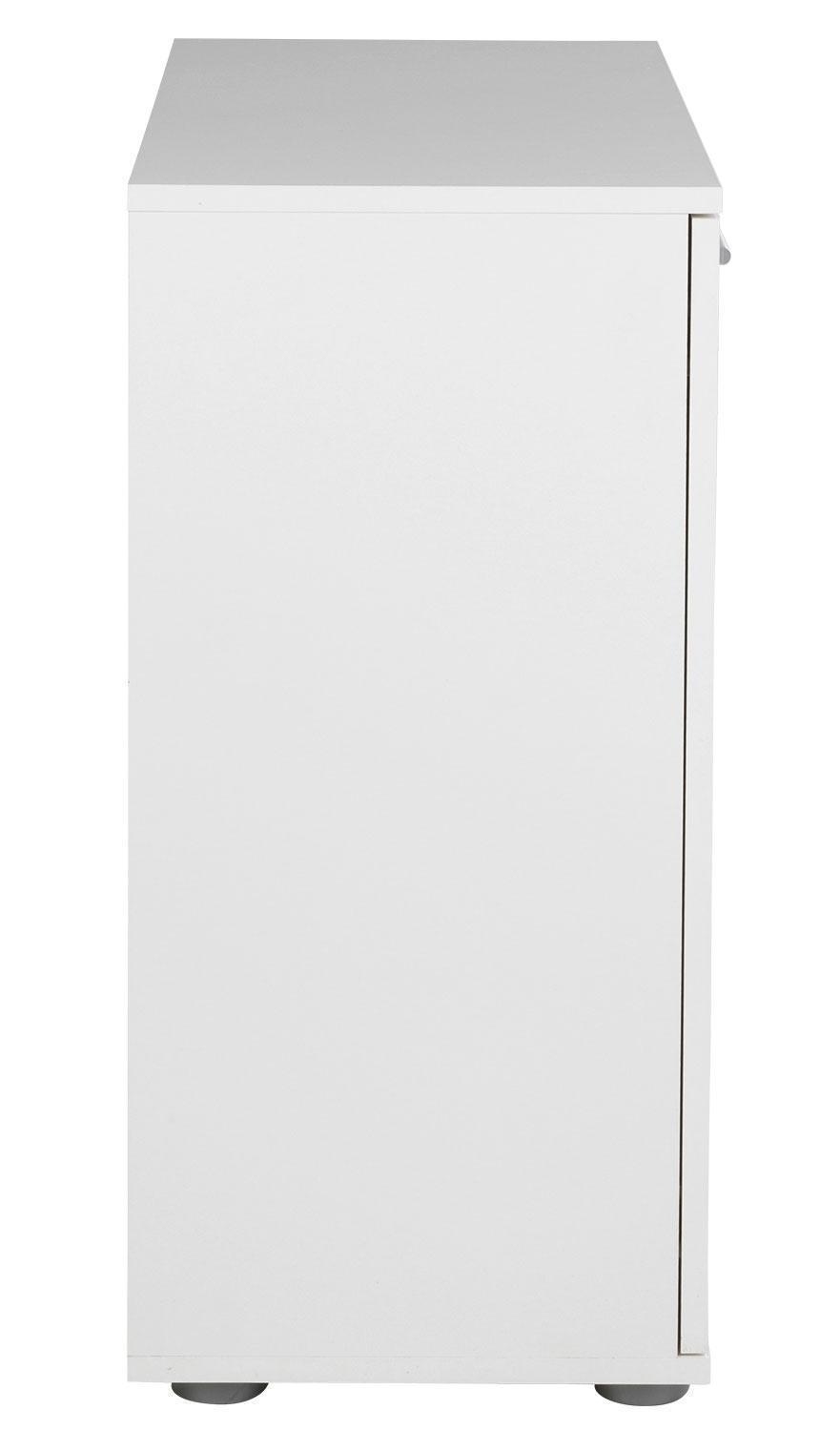 Die Kommode in weiß verfügt über einen 3-fach höhenverstellbaren Einlegeboden. Dies ermöglicht eine optimale Anpassung an die jeweiligen Bedürfnisse.
