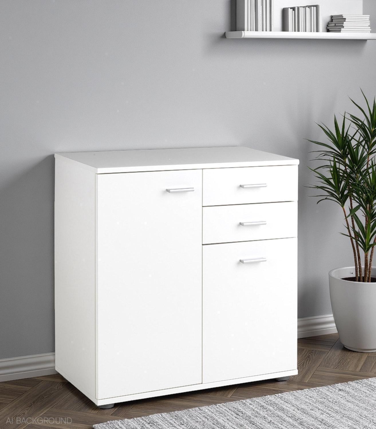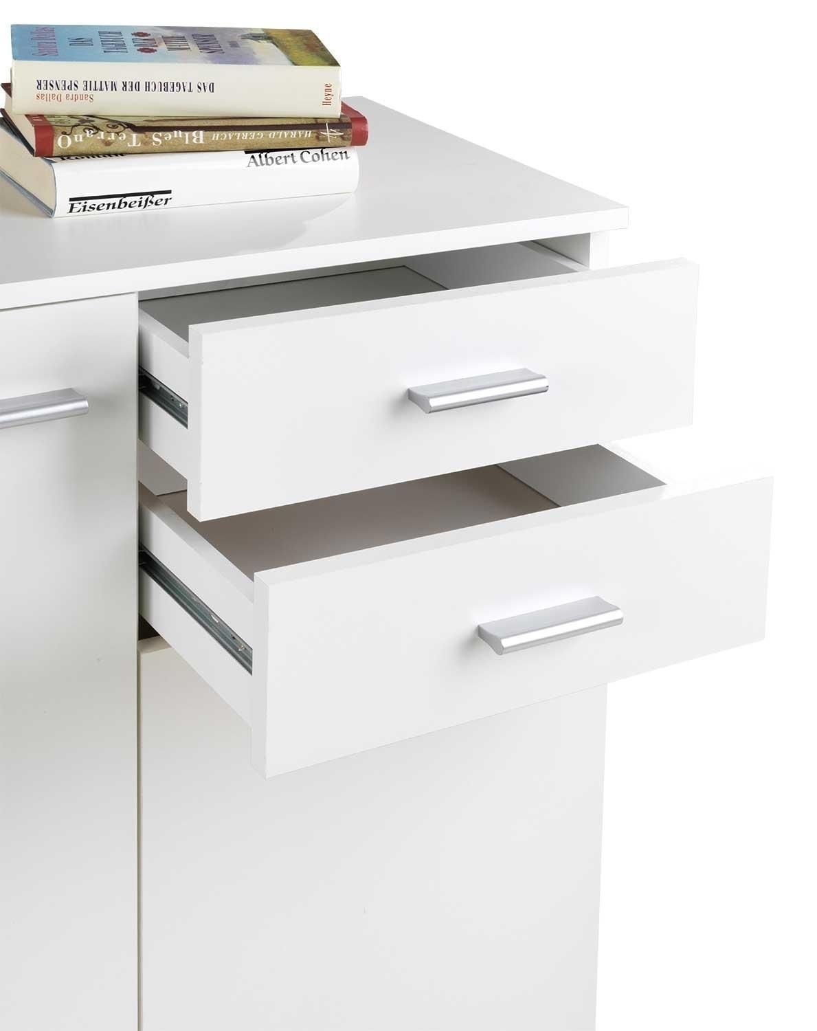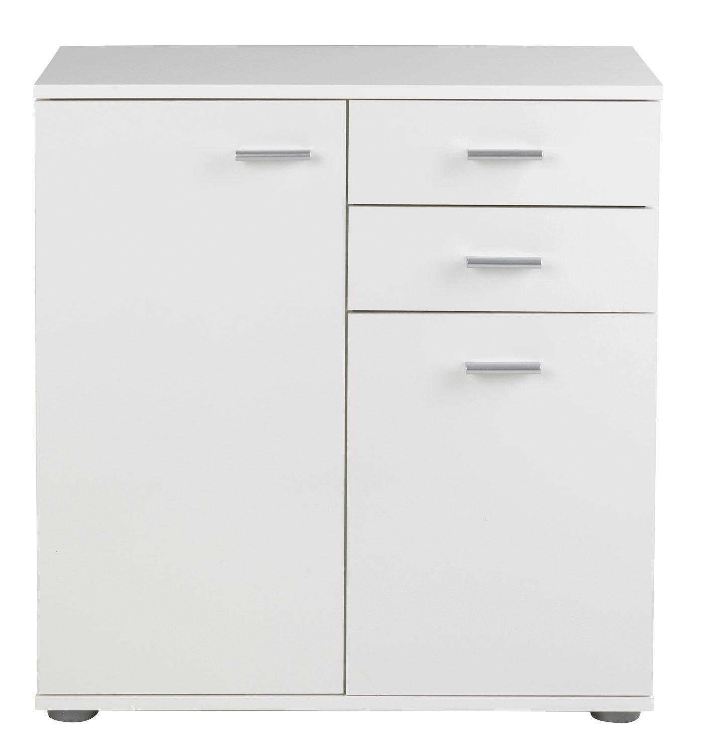 | Lieferumfang: | 1 Kommode mit 2 Schubladen, 2 Türen und 1 Einlegeboden. Der Einlegeboden ist 3-fach in der Höhe verstellbar |