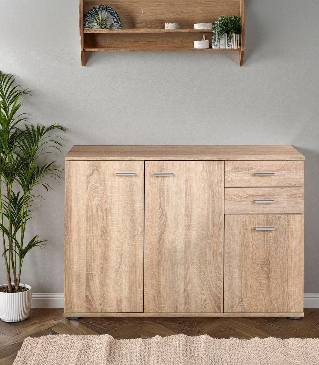 Eiche Sonoma Dekor - B 106 cm - drei Türen - zwei Schubladen - ein Einlegeboden