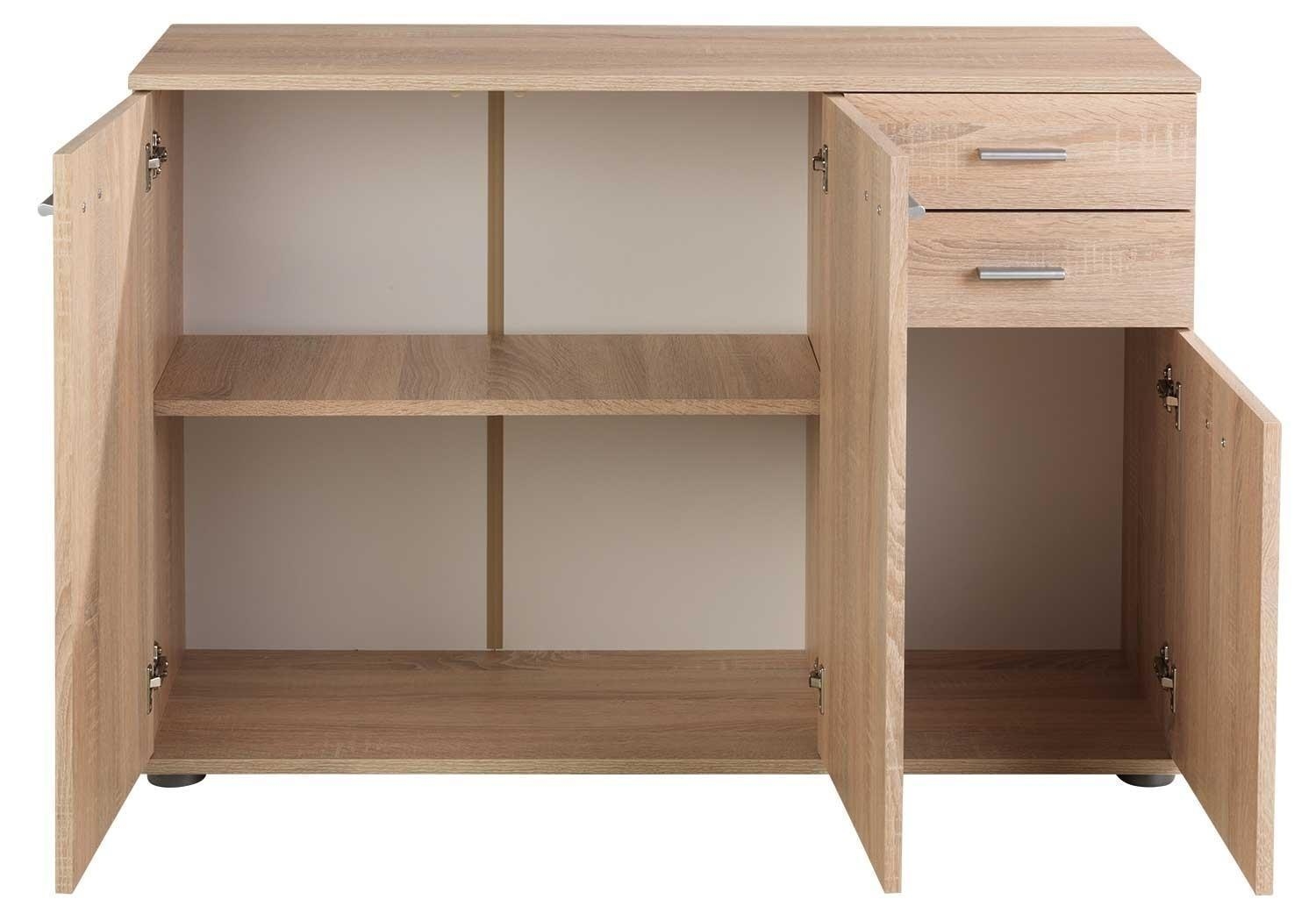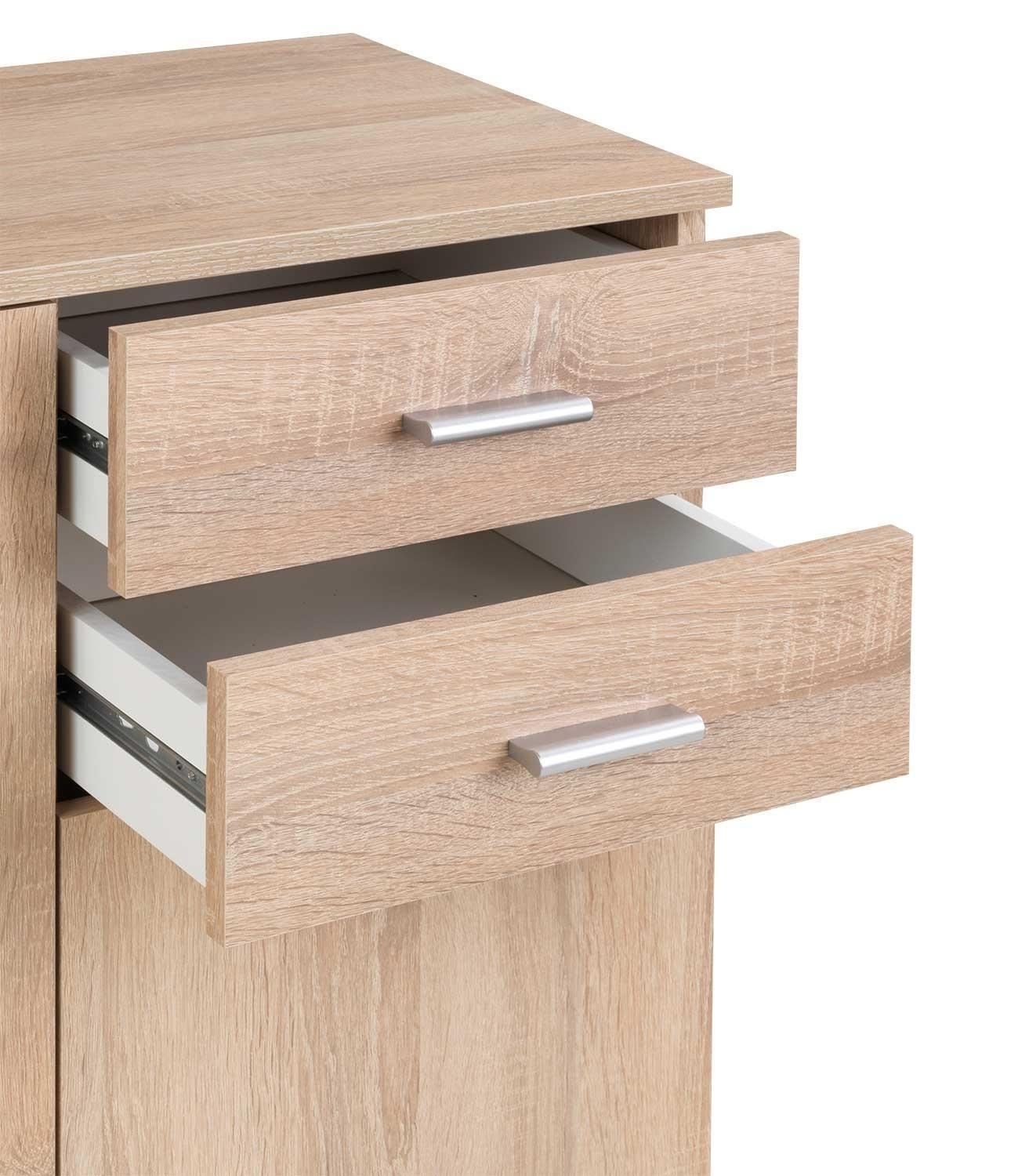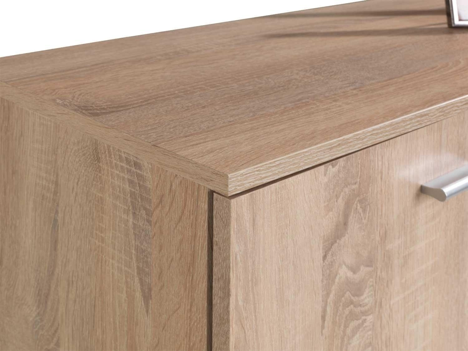 Die Kommode in Eiche Sonoma Dekor verfügt über einen 3-fach höhenverstellbaren Einlegeboden. Dies ermöglicht eine optimale Anpassung an die jeweiligen Bedürfnisse.