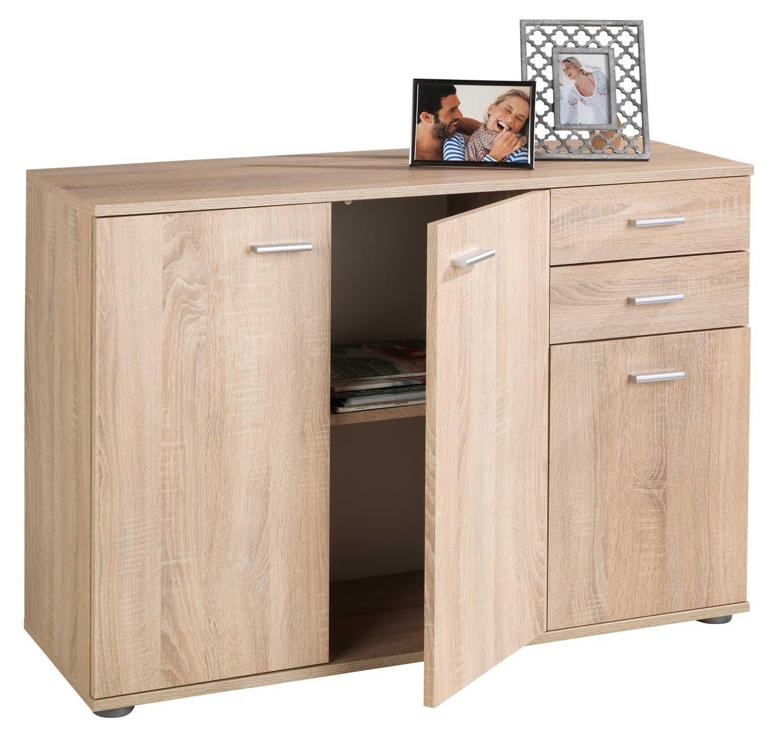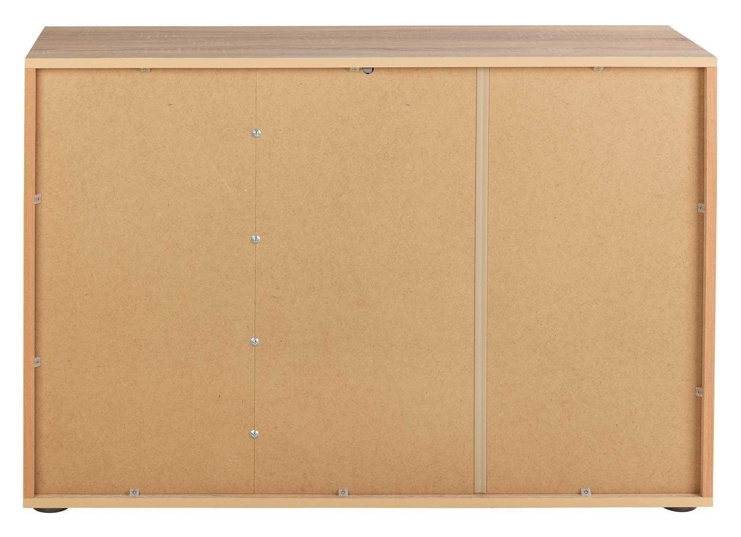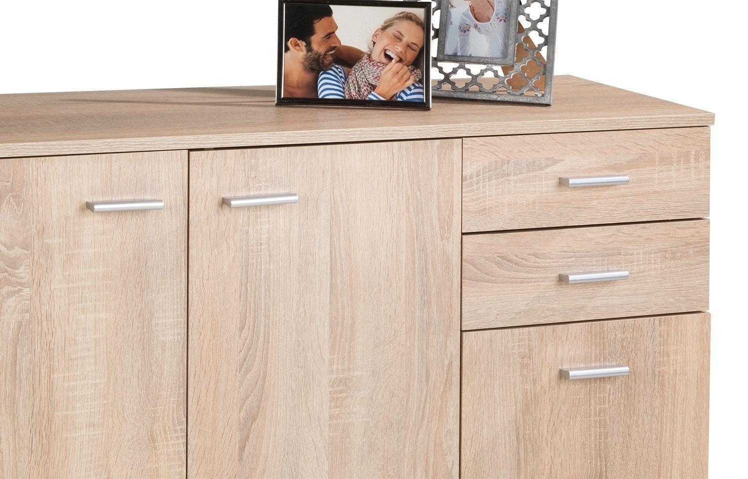 Die Kommode in Eiche Sonoma Dekor verfügt über einen 3-fach höhenverstellbaren Einlegeboden. Dies ermöglicht eine optimale Anpassung an die jeweiligen Bedürfnisse.