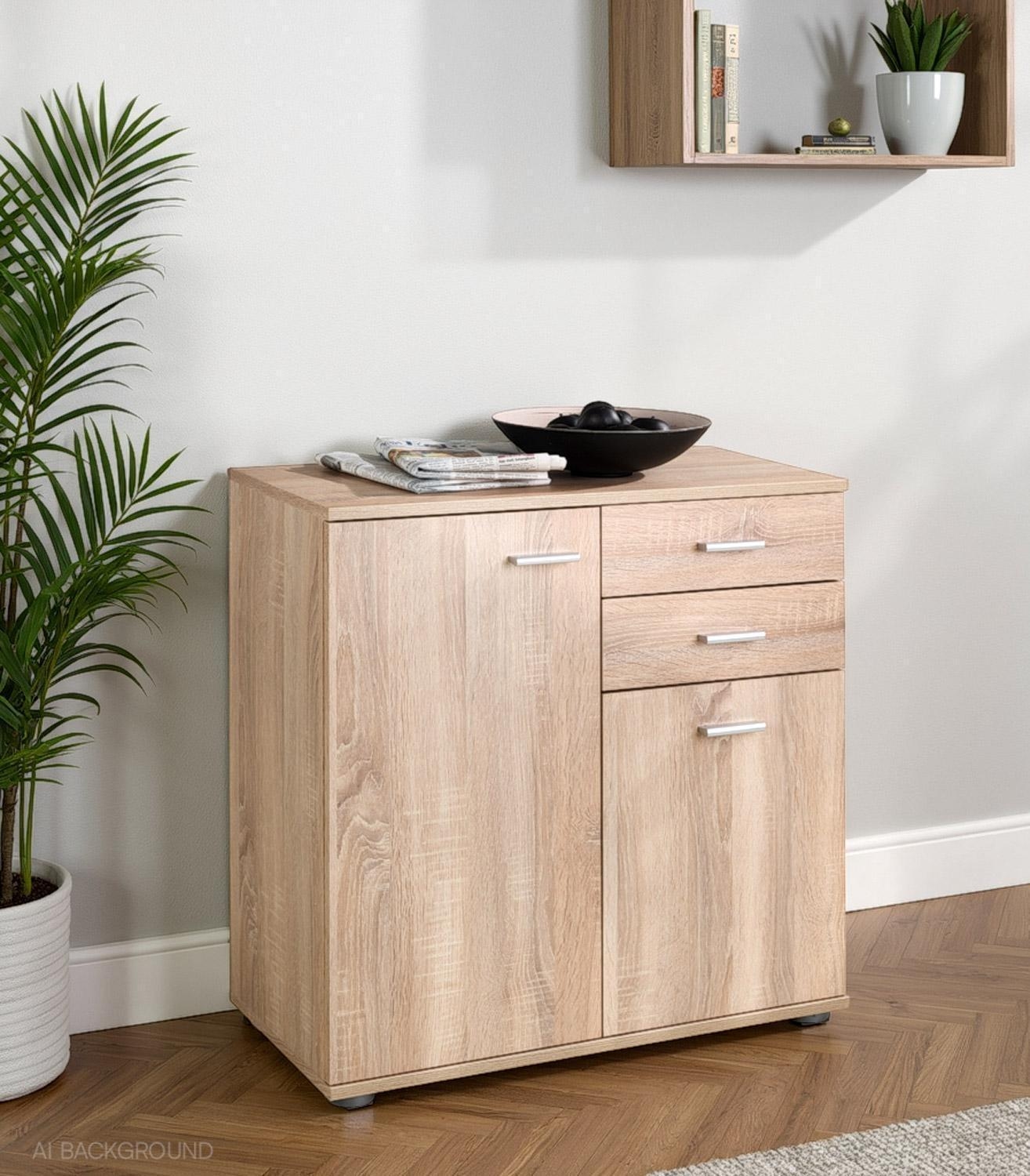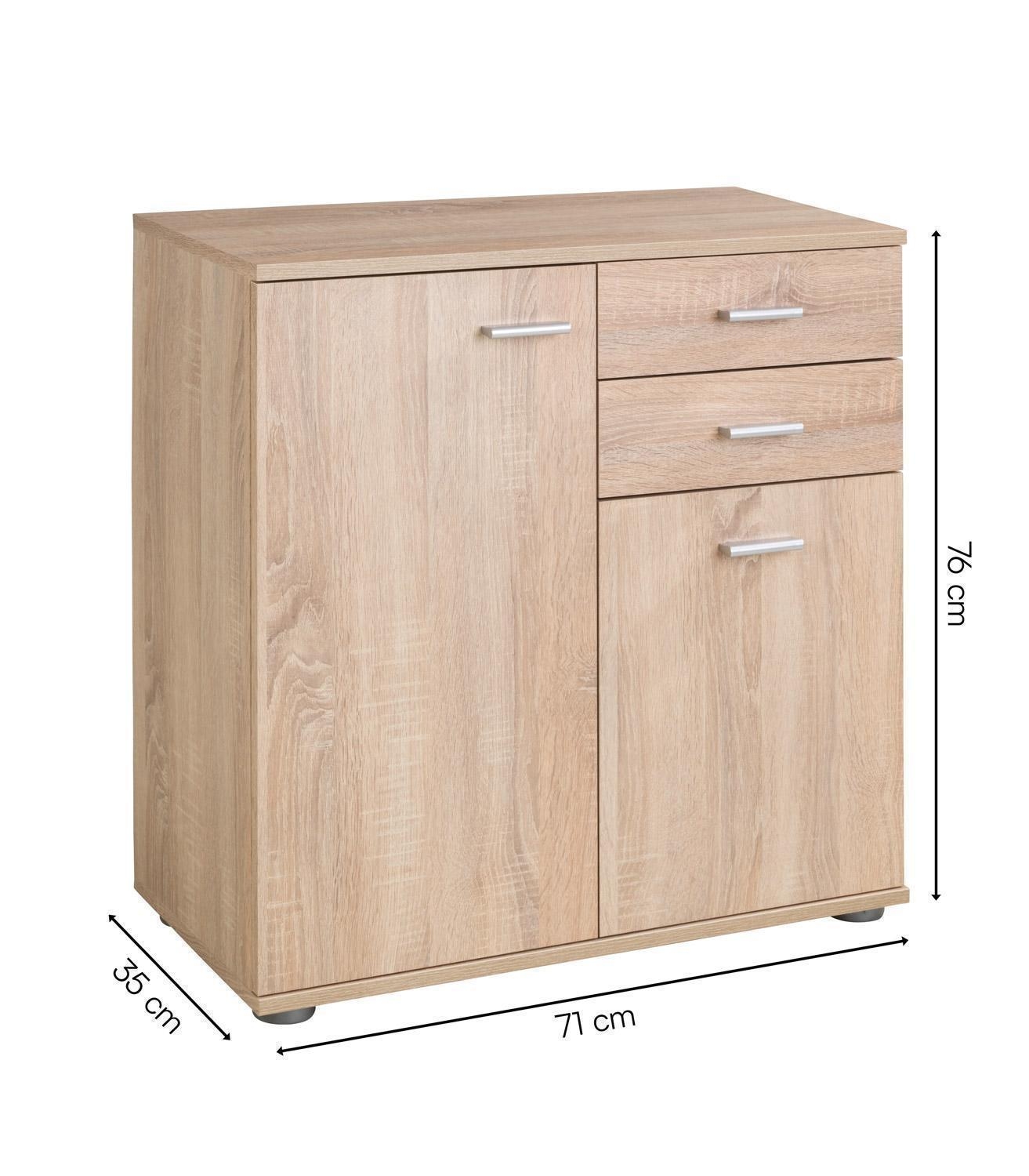 Eiche Sonoma Dekor - B 71 cm - zwei Türen - zwei Schubladen - ein Einlegeboden