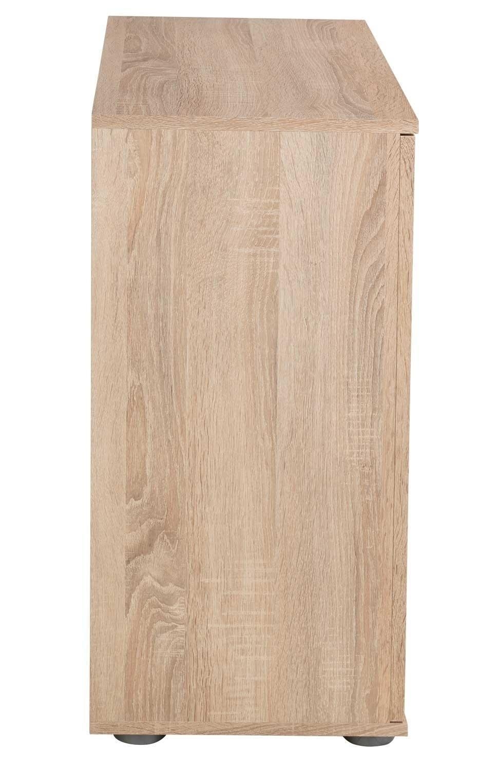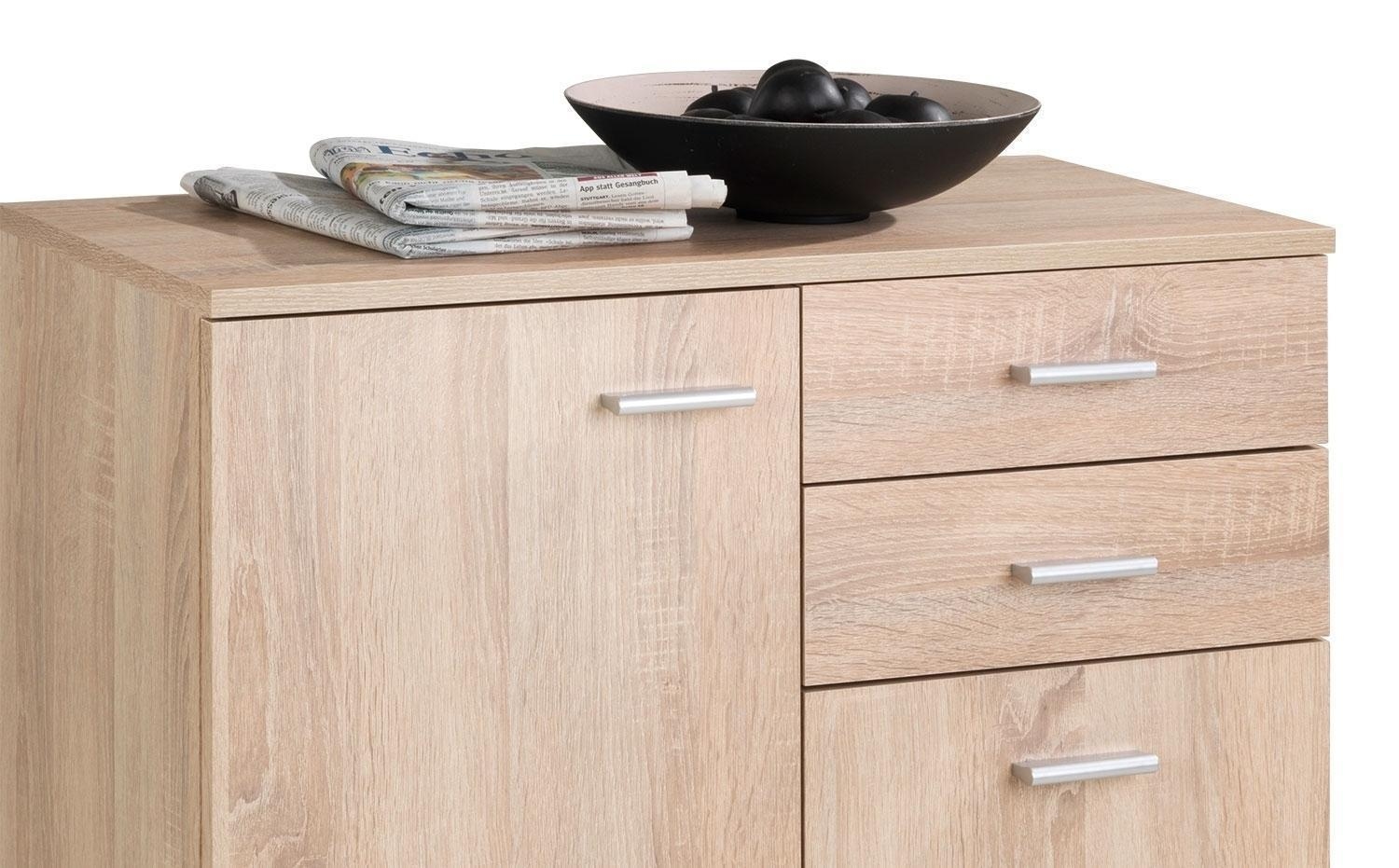 Die Kommode in Eiche Sonoma Dekor verfügt über einen 3-fach höhenverstellbaren Einlegeboden. Dies ermöglicht eine optimale Anpassung an die jeweiligen Bedürfnisse.