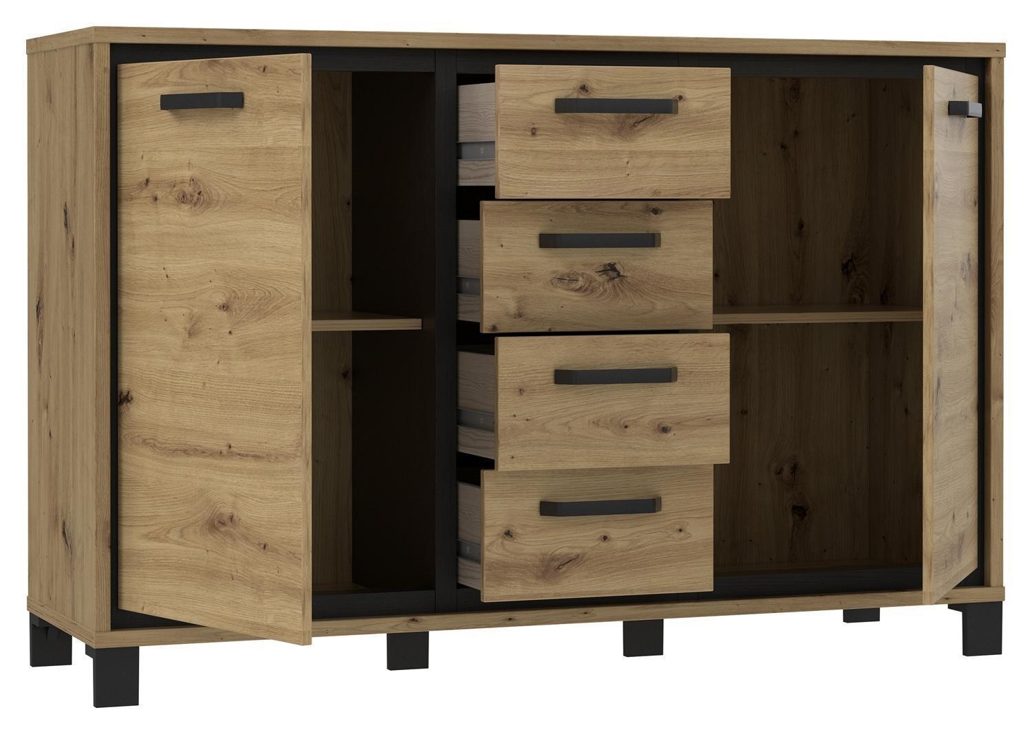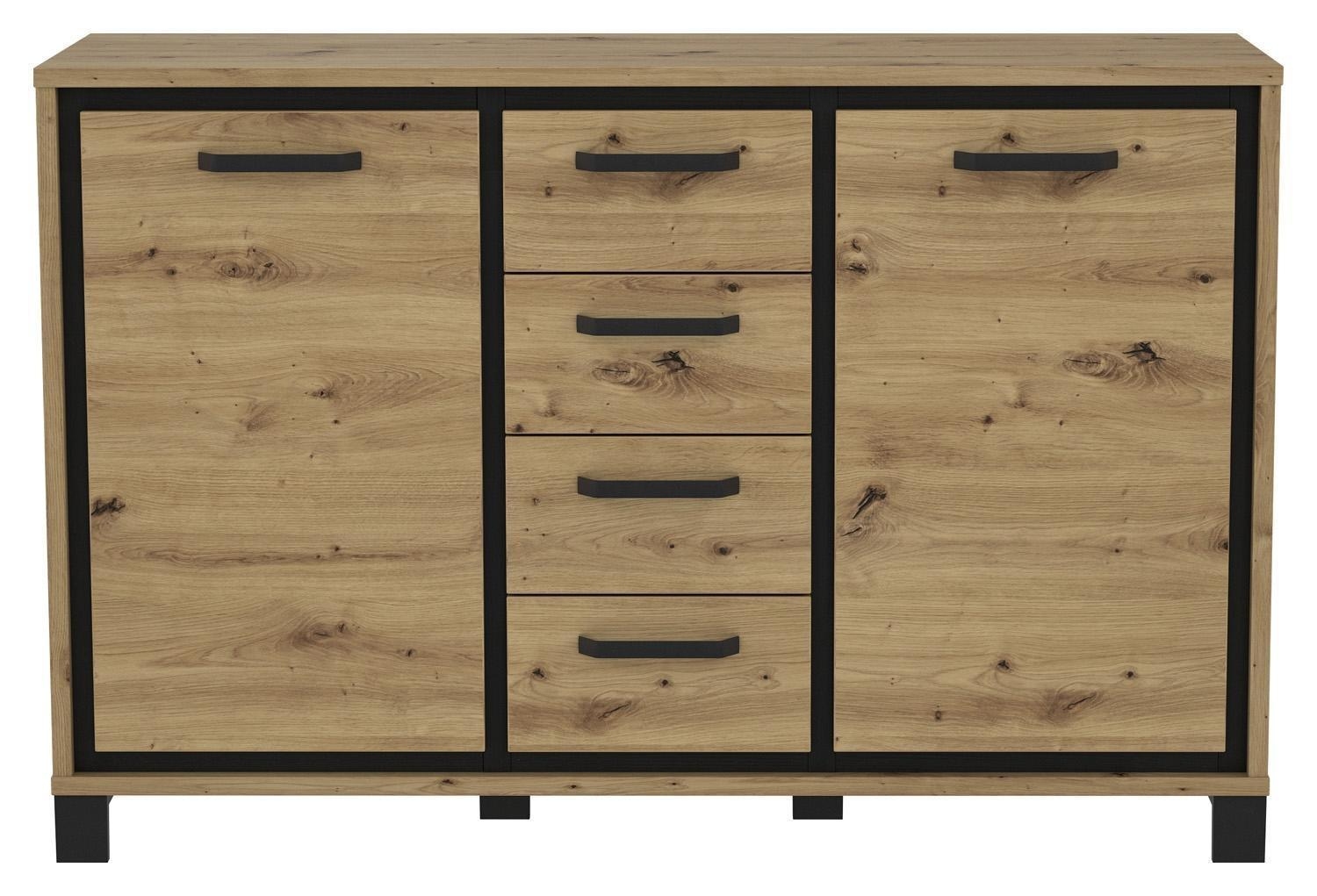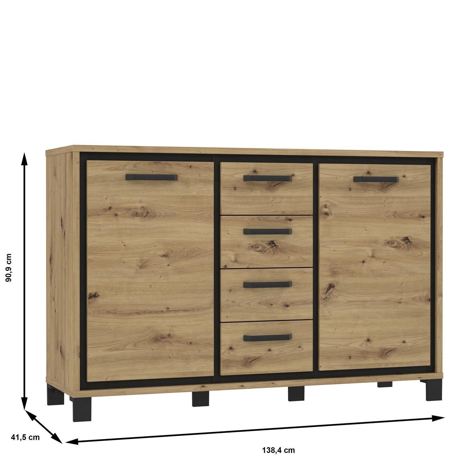 139 x 92 cm - 2 Türen - 4 Schubladen Artisan Eiche Dekor - Schwarz