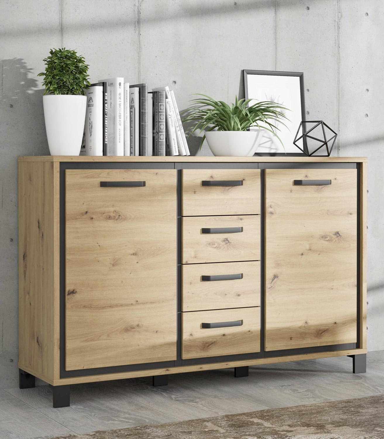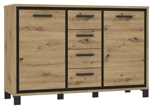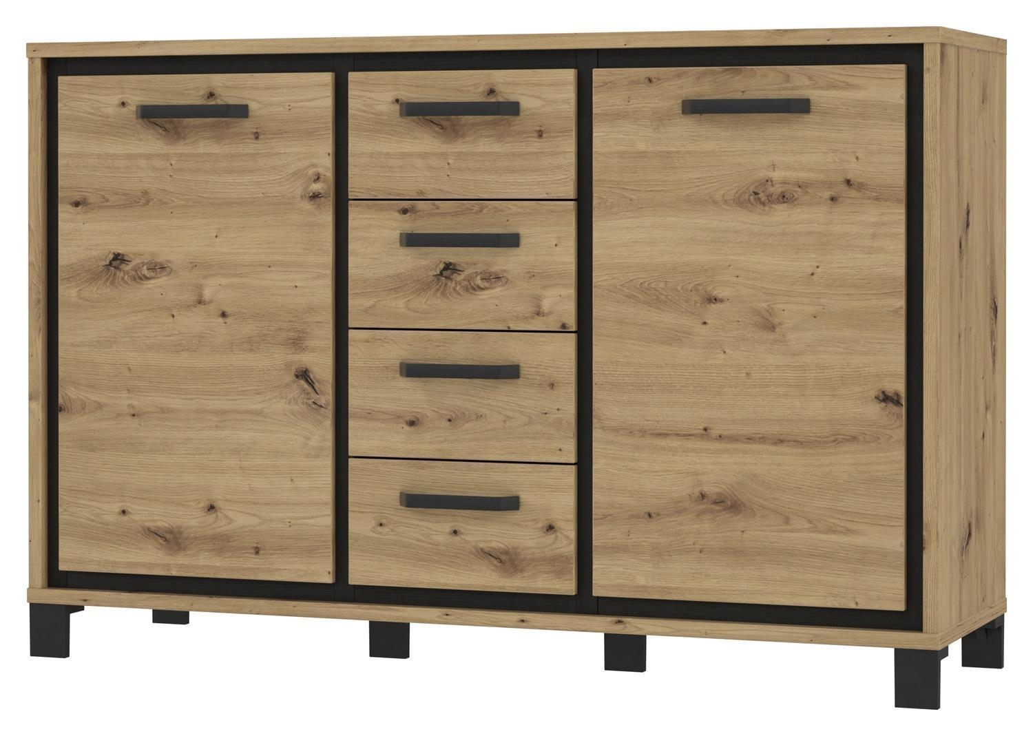 139 x 92 cm - 2 Türen - 4 Schubladen Artisan Eiche Dekor - Schwarz