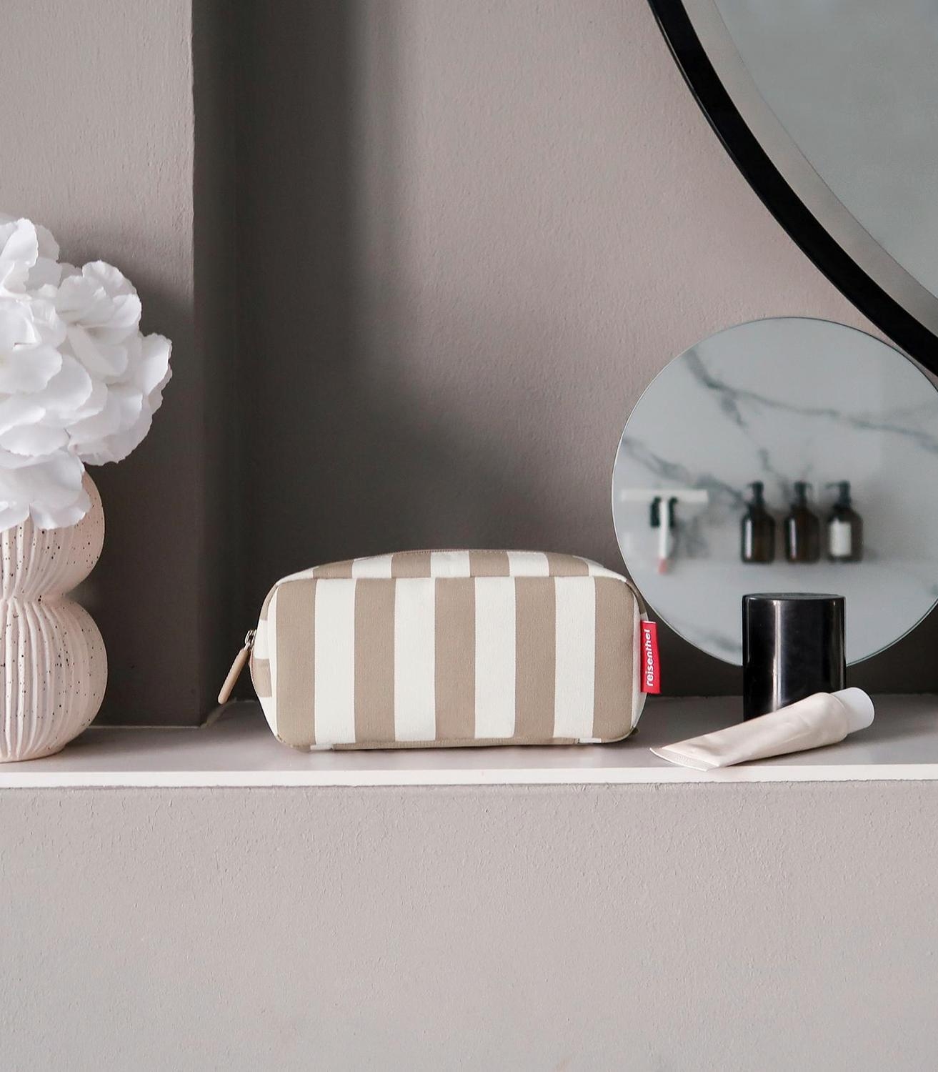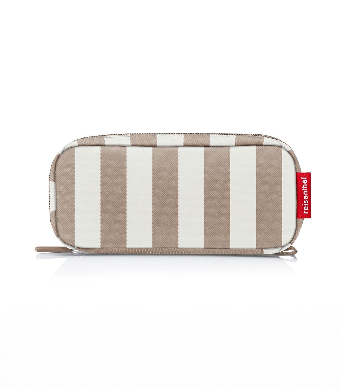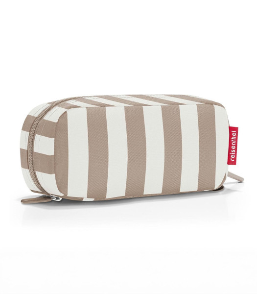 Die wasserabweisende Kosmetiktasche MULTICASE SUMMERSTRIPES COFFEE von Reisenthel bietet 1,5 Liter Volumen. Hergestellt aus Polyestergewebe in Braun und Weiß, hat sie ein inneres Hauptfach und 2 Steckfächer im Inneren. Geschlossen beträgt die Größe B 21 x H 10 x T 7 cm.
