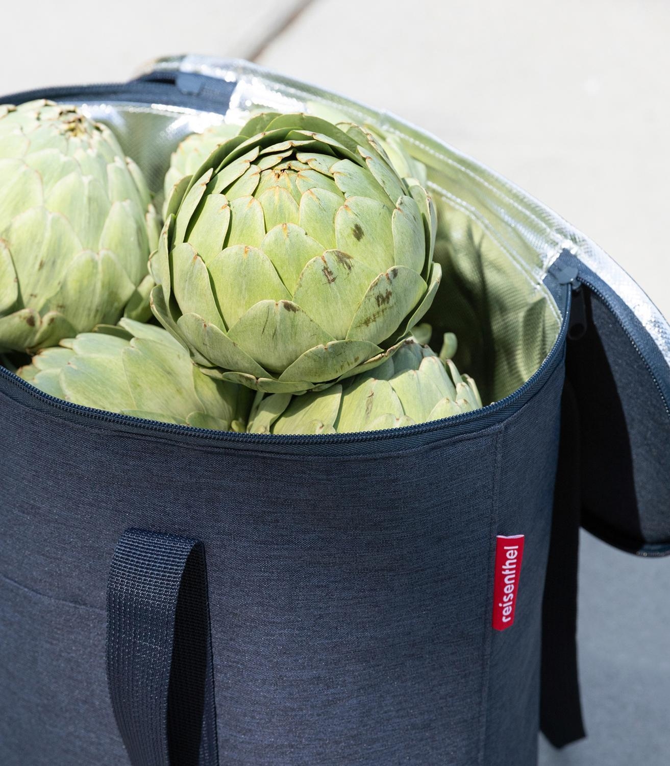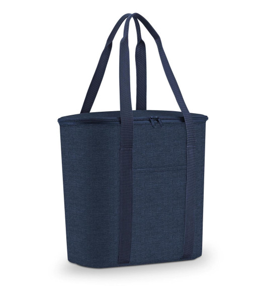 Die Kühltasche THERMOSHOPPER TWIST NAVY der Marke Reisenthel ist aus blauem Polyestergewebe gefertigt und verfügt über ein Fassungsvermögen von 15 Litern. Diese Isoliertasche ist mit einem Innenfutter ausgestattet, das eine Thermobeschichtung aus Aluminiumfolie aufweist, sowie mit einem dichtschließenden Reißverschluss versehen. Zwei vernähte Tragegriffe ermöglichen den Transport, während ein äußeres Steckfach zusätzlichen Stauraum bietet. Das Produkt hält Lebensmittel länger kühl und frisch. Mit einer Breite von 38 cm, einer Höhe von 35 cm und einer Tiefe von 16 cm dient diese Kühltasche zur Aufbewahrung von temperatursensiblen Waren.