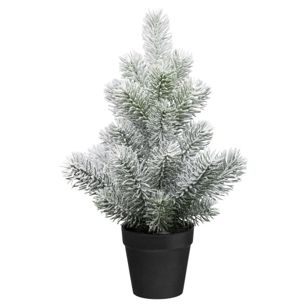 Der künstliche Weihnachtsbaum TRIA ist eine kompakte und pflegeleichte Dekorationslösung für die Weihnachtszeit. Der Baum besteht aus Kunststoff und ist in Grün gehalten, wobei die künstlich beschneiten Tannennadeln in Weiß für eine winterliche Atmosphäre sorgen. Ein schwarzer Übertopf aus Kunststoff vervollständigt das Design. Mit einem Durchmesser von 15 cm und einer Höhe von 35 cm ist er ideal für kleine Räume. Nadelfrei und ohne Gießen, ist er besonders pflegeleicht und wiederverwendbar.