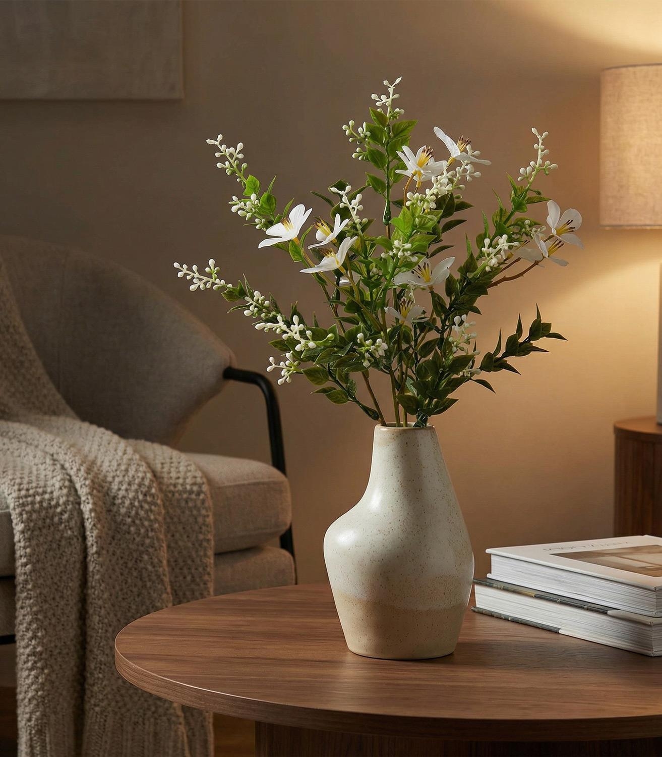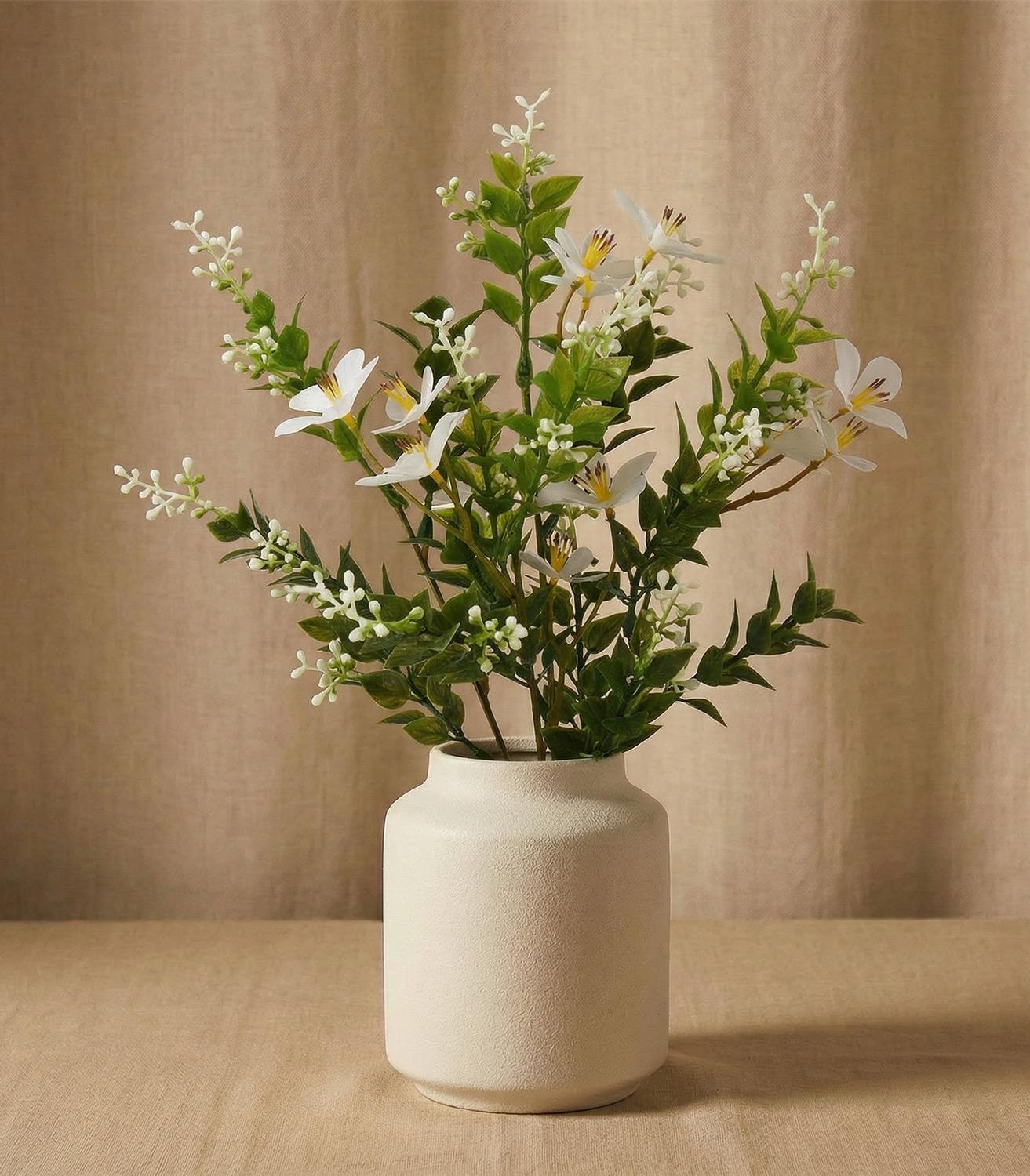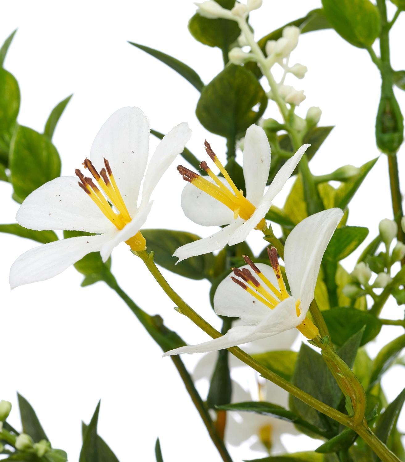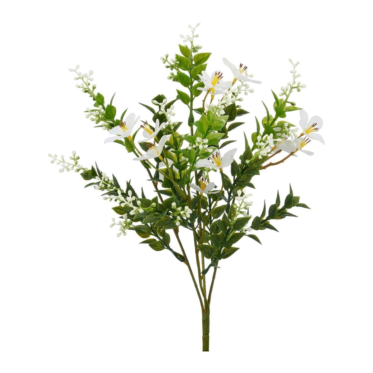 Der künstliche Miniblattbusch BELETA ist in Grün gestaltet und mit weißen Blüten versehen. Die naturgetreue Kunstpflanze besteht aus Kunststoff und weist eine Höhe von 34 cm auf.