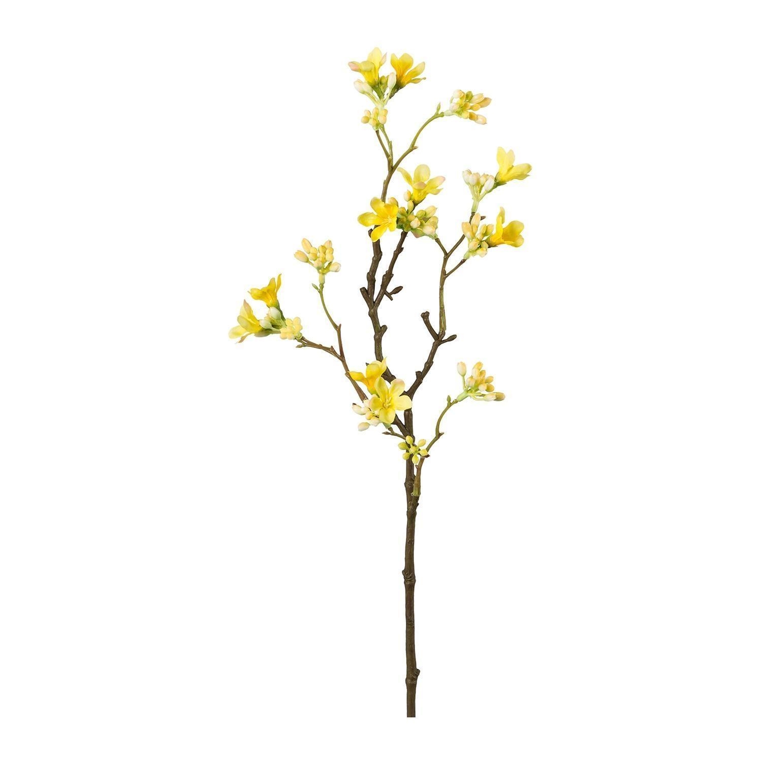 Die Kunstpflanze Scheinquittenzweig SASSA ist als naturgetreue Nachbildung in Braun gestaltet. Dieser künstliche Zweig ist mit gelben Blüten versehen, wobei jede einzelne Blüte einen Durchmesser von 2 cm hat. Das Dekoelement besteht aus Kunststoff und besitzt eine Höhe von 51 cm. Aufgrund der Materialwahl bleibt dieser Kunststoffzweig dauerhaft formstabil und erfordert keine pflegerischen Maßnahmen. Diese künstliche Pflanze dient als langlebiges Element für dekorative Zwecke und kann durch die detaillierte Verarbeitung der Blüten als eigenständiges Objekt oder in Gestecken genutzt werden.