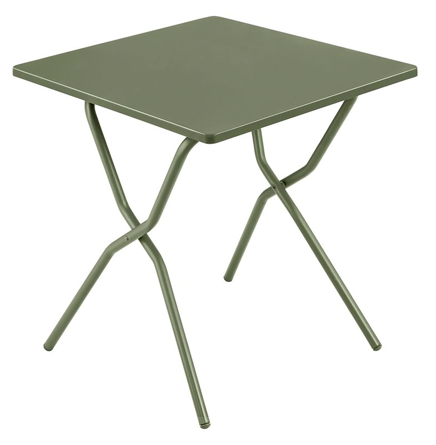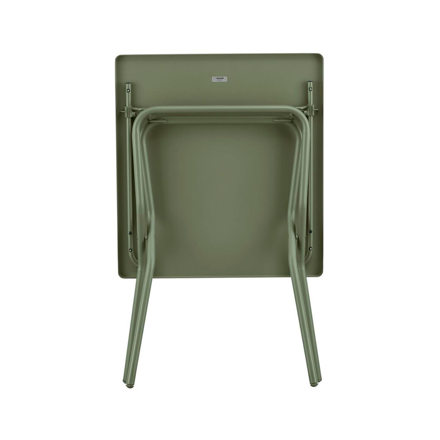 Der Gartentisch BALCONY NATURA COLORBLOCK der Marke Lafuma ist ein klappbarer Tisch mit einer Tischplatte aus Stahl in der Farbe Moosgrün. Die Oberfläche ist mit einer Polyesterlackierung versehen, die eine hohe UV-Beständigkeit gewährleistet. Der Tisch verfügt über Höhenausgleichsfüße, die für einen stabilen Stand auf unebenen Flächen sorgen. Dank seiner klappbaren Konstruktion lässt er sich platzsparend verstauen. Die Maße des Tisches betragen 64 cm in der Breite, 73 cm in der Höhe und 70 cm in der Tiefe.