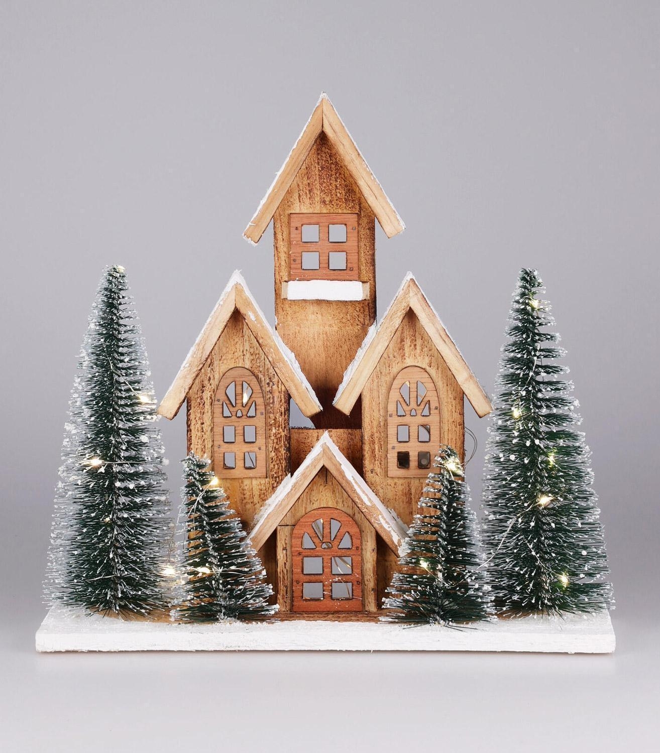 - LED-Deko-Haus aus Holz in Braun
