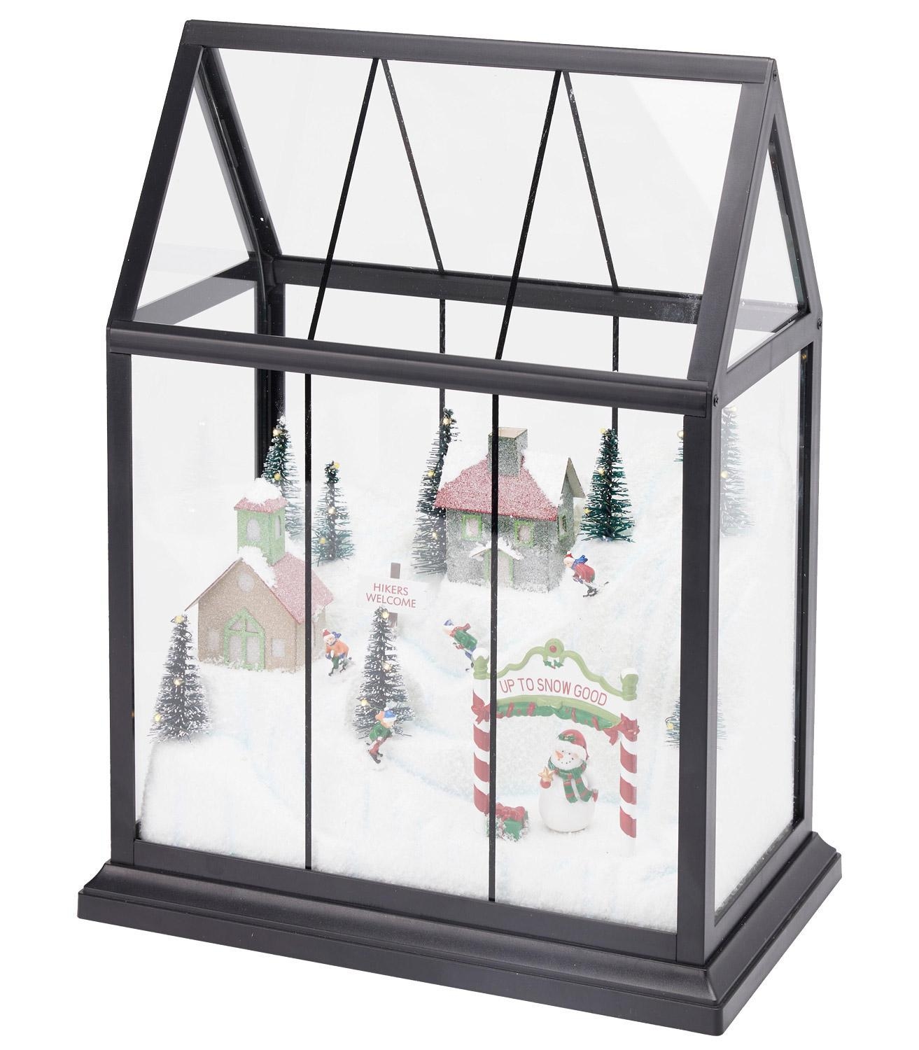 Das LED-Deko-Haus HOMETOWN ist in Schwarz und Transparent gehalten und besteht aus einer Kombination von Glas und Metall. Mit einer Höhe von 33 cm eignet es sich ideal als dekoratives Element für Fensterbänke, Regale oder Tische. Das Haus ist batteriebetrieben und verfügt über eine integrierte LED-Beleuchtung, die eine stimmungsvolle Atmosphäre erzeugt.