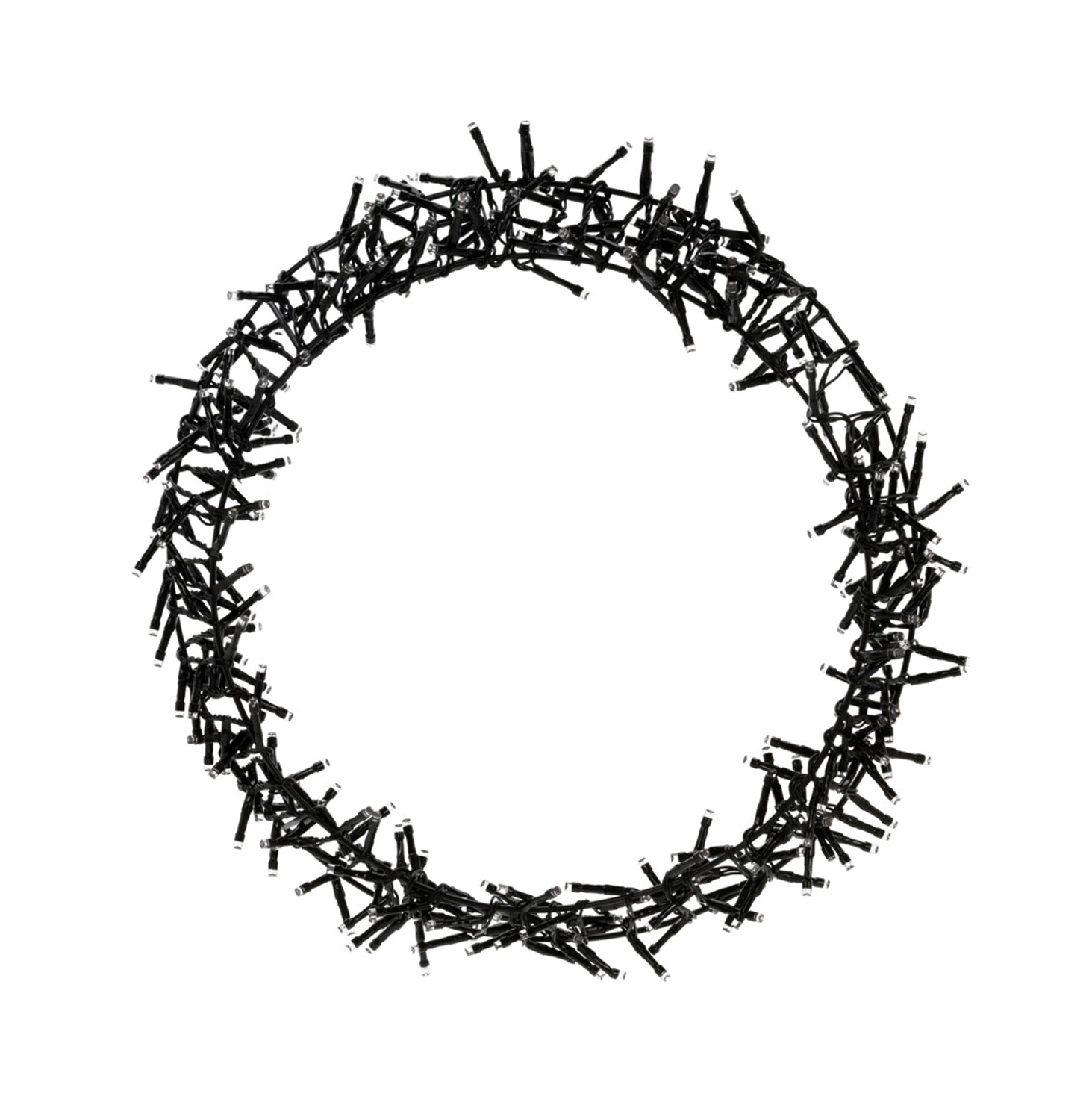 Der LED-Dekokranz VELANT aus schwarzem Metall hat einen Durchmesser von 38 cm und eignet sich perfekt für stimmungsvolle Dekorationen. Mit seinen 300 LED-Leuchtmitteln bietet er eine helle und gleichmäßige Beleuchtung. Dank der 8 verschiedenen Blink- und Lichtfunktionen lässt sich die Atmosphäre individuell anpassen. Der Kranz ist durch die IP44-Zertifizierung auch für den Außenbereich geeignet und hält Witterungseinflüssen stand.