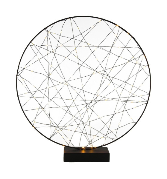 Die LED-Dekoleuchte BURGA besteht aus Metall in schwarzer Ausführung und besitzt einen Durchmesser von 40 cm. Sie wird mit Batterien betrieben und benötigt drei AA-Batterien für den Betrieb. In die Leuchte sind 120 LED-Leuchtmittel integriert, die für eine gleichmäßige und angenehme Beleuchtung sorgen. Durch ihre Ausführung eignet sich die Dekoleuchte sowohl für den Einsatz auf Tischen als auch zur Wand- oder Raumdekoration.