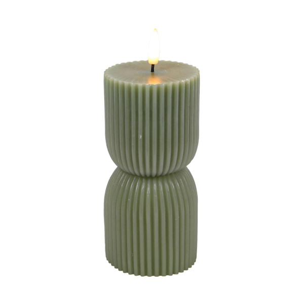 - LED-Kerze aus Echtwachs in Grün mit Rillenoptik