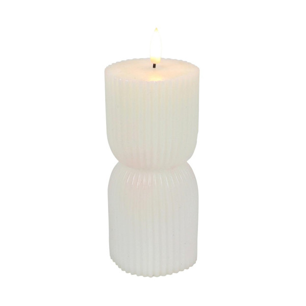 - LED-Kerze aus Echtwachs in Weiß mit Rillenoptik