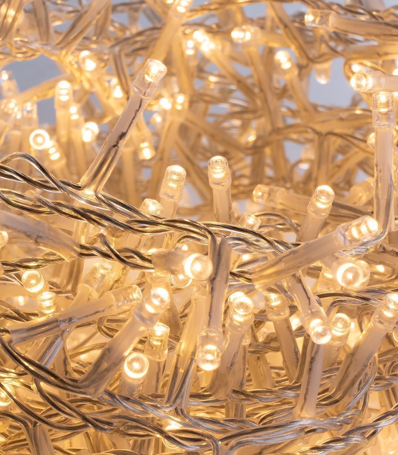 Die LED-Lichterkette GERIA aus transparentem Kunststoff erstreckt sich über eine Länge von 350 cm und bietet vielfältige Einsatzmöglichkeiten. Sie ist dimmbar und mit einem integrierten Timer ausgestattet, was eine einfache und flexible Steuerung ermöglicht. Dank der IP44-Zertifizierung ist die Lichterkette auch für den Außenbereich geeignet und bietet zuverlässigen Schutz vor Witterungseinflüssen. Mit 576 LED-Leuchtmitteln sorgt sie für eine helle und gleichmäßige Beleuchtung.