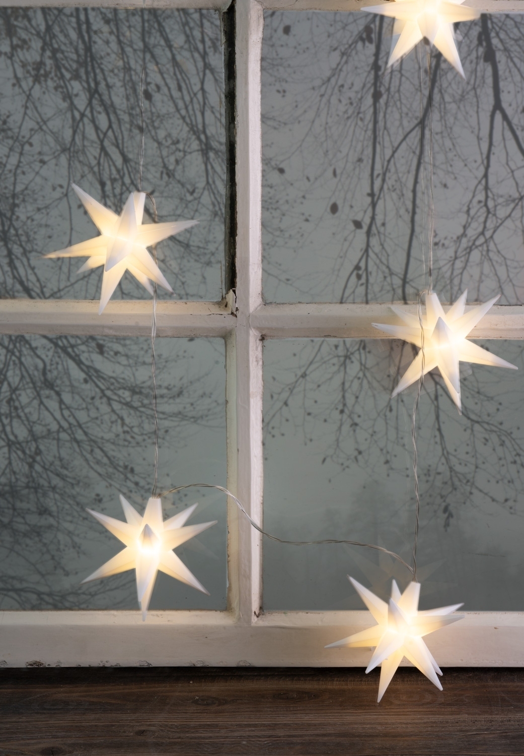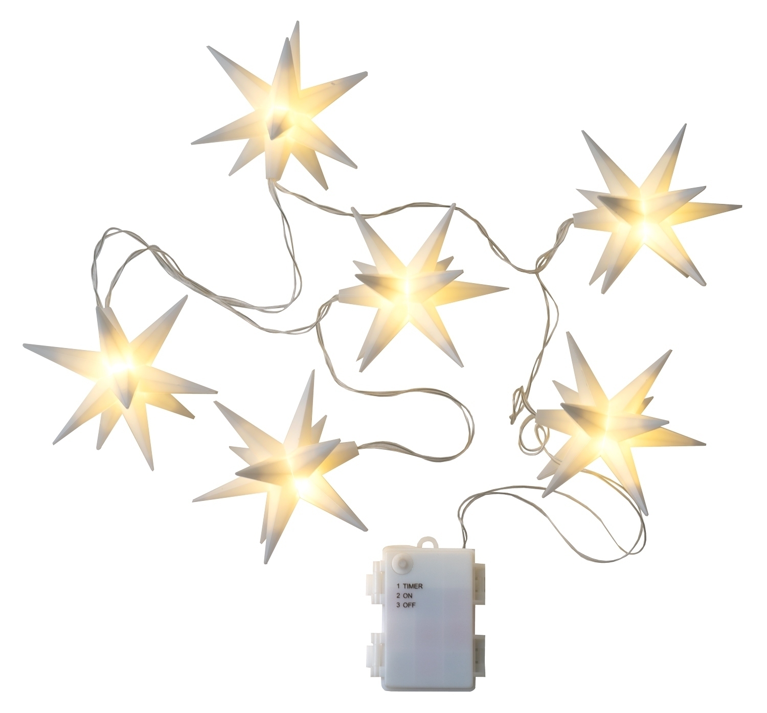 L 2 m - mit 6 Sternen - Weiß - Kunststoff - batteriebetrieben